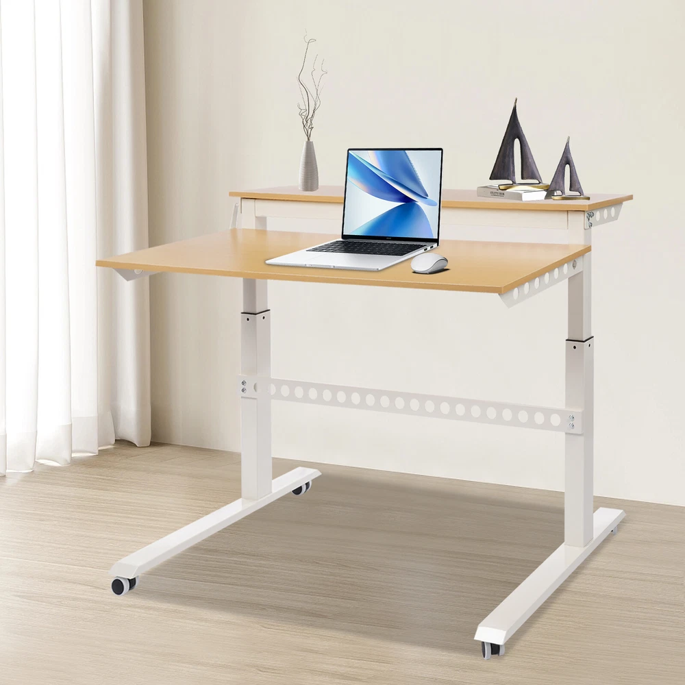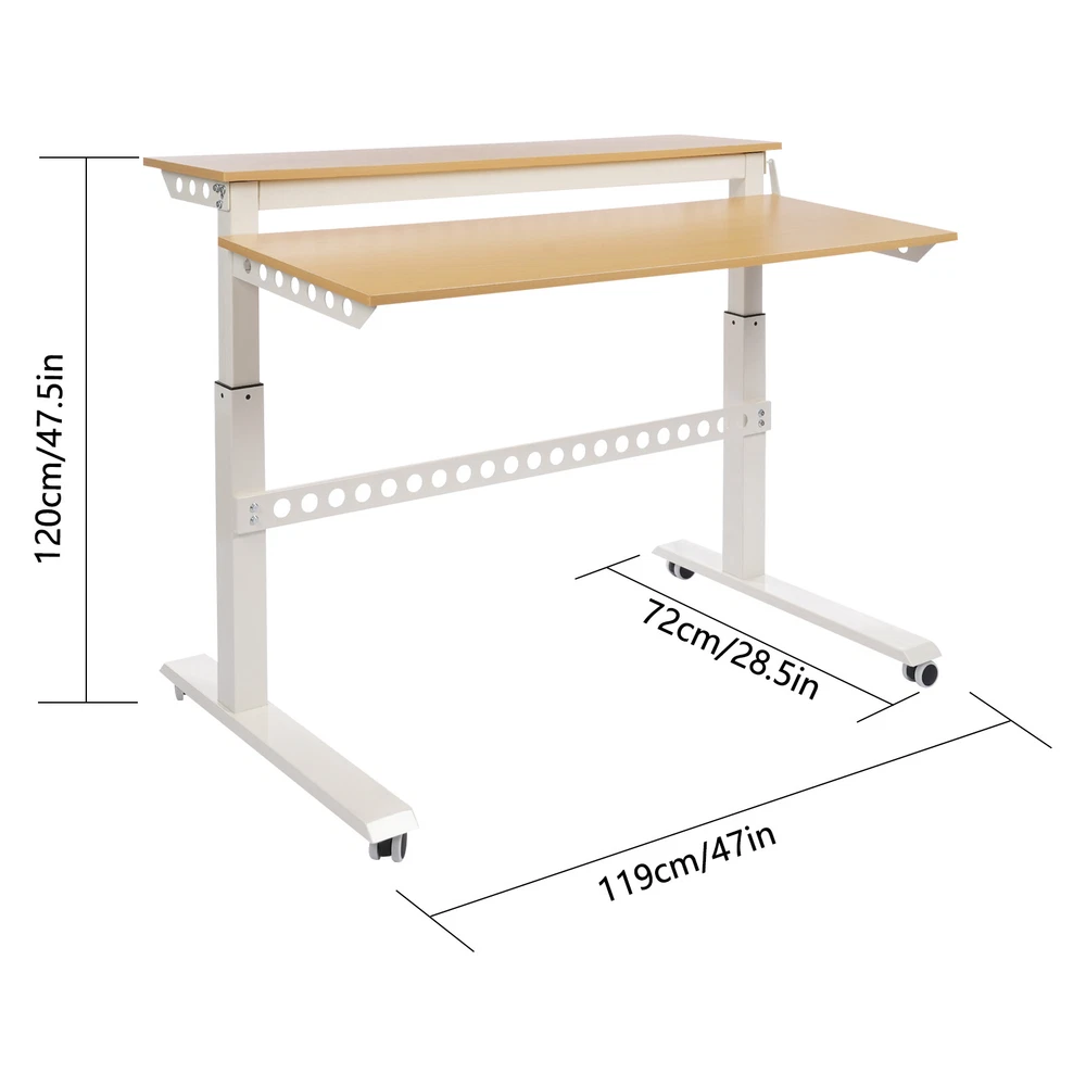 Home Office Height Adjustable Standing Desk Computer Desk w/ Wheels 47"x 28.5" Welcom to alwaytty03 Description This 2-tier standing desk is crafted with the selected materials to ensure a solid and durable structure. It Highlights a spacious two-tier desktop design and a convenient crank handle to properly place various devices and allow you to adjust to the ideal height so that whether you are immersed in gaming, enjoying a movie, focusing on studying, or efficiently working, you can get the optimal level of comfort. Key Highlights Made to Last: Premium carbon structural steel and MDF boards and an electrostatic spraying treatment make this product hard to corrode, rust, and deform, keeping it practical and beautiful for a long period. Adjustable Height: You can easily adjust the height of the desktop with a 15.75-inch range by the crank handle for a better user experience, whether sitting or standing. Moreover, the crank can be positioned on either side of the desk to work around walls and other obstacles. Movable and Fixable : Four universal wheels with brakes allow you to move this product flexibly and easily and fix it stably with less effort. Thoughtful Design: The wide double-tier desktop gives this product plenty of room to store your books, computer monitors, keyboard, and mouse for efficient work or study. Good Appearance: The simple look and elegant colors blend naturally into your home environment, making it a harmonious decoration for your space. Simple Assembly: The complete accessories and simple structure allow you to assemble this product with ease and enjoy the installation fun. Clean with Ease: Its smooth surface and simple structure make it easy to clean with a damp cloth. Ideal Gift: Its good appearance and practical function make it an ideal housewarming gift for your friends, families, and colleagues. Buy with Confidence: We stand behind all our guests and look forward to assisting you with your purchase. It is our pleasure to answer your confusion and questions. The end of the story between us is not "we sell and you buy". Details Smooth Edges: They can protect your hands from getting scratched during installation and daily use. Cable Management Holes: The multiple holes allow you to easily and neatly manage power cables(not included) with ease. Application The product is suitable for bedrooms, computer rooms, study rooms, offices, living rooms, studios, and other places. Details Color: White, Wood Color Shape: Rectangular Assembly Required: Yes Mount Type: Free Standing Recommended Uses For Product: Working Material: Carbon Structural Steel, MDF Board Process: Electrostatic Spraying Max. Load Bearing Capacity: 30kg/66.14lbs Adjustable Height Range: 40cm/15.75in Product Size: 120*72.4*120.65cm/47*28.5*47.5in Packaging Size: 120*47*13cm/47.24*18.5*5.12in Gross Weight: 19.8kg/43.65lbs Net Weight: 18.5kg/40.79lbs Package Included 1* 2-Tier Standing Desk 1* Crank Handle 4* Wheels Other Needed Accessories Notes Please check the style and size carefully before ordering. Please use this product within its load-bearing capacity. Please allow the slight color difference caused by the shooting light and 1-3cm error due to manual measurement, and make sure you do not mind before you order. Payment Delivery details Terms of sales About us Contact us Payment We accept ebay payment 。 Fees such as import duties, taxes are not included in the item price or shipping costs. These charges are the buyer's responsibility. Delivery details Shipping: 2-9 working days to: USA Terms of sales We maintain high standards of excellence and strive for hundred percent customer satisfaction. Feedback is very important to us. We hope that you contact us immediately before you give neutral or negative feedback, so that we can address your concerns. It is impossible to address issues if we do not know about them! About us Your satis faction is our ultimate goal. We work hard to earn your trust and future business. Our certified technicians have tested each item before shipping. The unit comes with 1 year limited warranty on all manufacturing defects. a) If you receive a defective item, you may return it or ask for a discount. Please contact us within 14 days after you receive the package. b) What you returned must be intact and in its original packaging as re? u. Customer is responsible for shipping costs of the returned item. c) We will cover the cost of shipping back t with the shipping rate indicated in the registration page. We will send you a new unit or refund the full payment you paid. Thank you. Contact us Business Hour Business Hour: Monday To Friday: 8:30 AM to 5:00 PM (Beijing China time) Due to time zones, our reply to your questions may not be immediately. But within above working time, we will reply your email within 24 hours. If it's non-workdays, please kindly be patient and wait till Monday. Please contact us with ebay message. Please feel free to contact us if you have any questions. Monday To Friday: 8:30 AM to 5:00 PM (Beijing China time) Due to time zones, our reply to your questions may not be immediately. But within above working time, we will reply your email within 24 hours. If it's non-workdays, please kindly be patient and wait till Monday. Please contact us with ebay message. Please feel free to contact us if you have any questions.