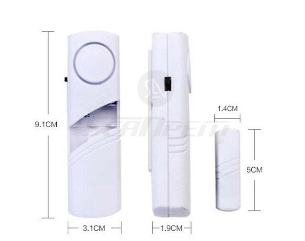 This is a new Type Door Window Safety Contact Magnetic Security Alarm. Portable enough to take with on business trips and vacations, keep yourself and your property safe and security. The intelligent furnishing with handsome, decent appearance, also be economical and practical. Magnetic sensor switch detects entry. Easily mounted to windows or doors with included double sides adhesive tape, no tools required. Other great uses are for your cupboard, shed, garage, toolboxes, etc. to prevent potential wandering sneakers. Features: 1.New and high quality 2.Environmental economy, high temperature resistant, corrosion resistant 3.Convenience in installation 4.Super environmental suitability and stability 5.Dustproof and insect prevention 6.Easily mounted by adhesive. Type to window or door 7. Magnetic sensor switch detects entry protecting your home or office whether you are in or out 8.Warning door / window sticker is supplied free in package 9.Operated by 2 pcs battery(The package does not include batteries) Specifications: 1.Sensor type:Alarm 2.Alarm type: sound 3.Material: plastic 4.Color: white 5.Size: 6.3" x 3.2" x 12.2" 6.Weight: 38g Magnetic sensor switch detects entry protecting your home or office whether you are in or out Prevent your family going out the house without notice. Protect your house from thiefs break in your house's windows and doors Super environmental suitability and stability and Dustproof and insect prevention Perfect for: - Home - Office - Sheds - Garages - Motorhomes - Boats - Vehicles - Outbuildings Easily mounted by adhesive. Type to window or door. Ideal entry warning for homes, apartments, mobile homes, offices, hotel rooms, garages, and more