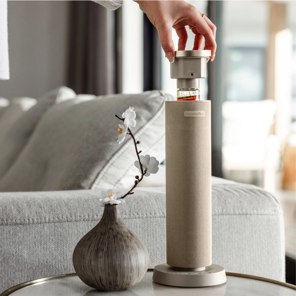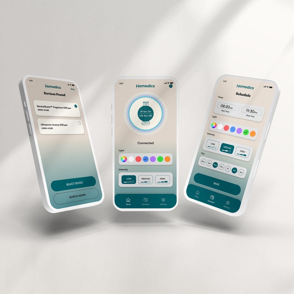 Homedics Serenescent Fabric Waterless Aroma Diffuser | Certified Refurbished Homedics SereneScent Waterless Aroma Diffuser | Essential Oil | Light Feature USE WITH HOMEDICS SERENESCENT 120ML FRAGRANCE OILS NO WATER, NO HEAT, NO MESS: Enjoy the mess-free, waterless diffuser that gives you a scent for any larger space (bedrooms, living rooms, dining rooms, etc.). A revolutionary alternative to the traditional diffuser or candle, this is a safer way to bring set-and-forget fragrance to your home. AMAZING SMELLING HOME THE HEALTHY WAY: Most premium home fragrances, whether candles, plug-ins, or sprays, use synthetic chemicals in their formulation. SereneScent home fragrance oils (sold separately) are created with all natural ingredients for a premium mood-boosting layer to home decor. MAKE THE FRAGRANCE EXPERIENCE YOURS: Choose from 3 levels for a fragrance mist intensity that's exactly the way you want it. The waterless diffuser works using intermittent mist intervals with pauses to achieve the precise aroma level you desire. The unit does not mist continuously. The base control and app include scent intensity, timer, and lights for easy-to-use experience. LIGHTS FADE, FRAGRANCE CONTINUES: This SereneScent diffuser is designed to effortlessly blend in with your decor. Turn the lights on and enjoy the warm glow of ambient solid or breathing lights in white, red, blue, purple, green, or orange. CRAFTED WITH NATURAL INGREDIENTS: Use with Homedics SereneScent 120ml clean & natural home fragrance oils (sold separately) - certified up to 100% USDA biobased. Each scent carries a different sensory experience. Choose your favorite 120ml SereneScent bottle to easily refill the diffuser. PATENTED SCENT TECHNOLOGY: The premium fabric diffuser mists with lighter-than-air microdroplets to efficiently disperse ultra-fine luxurious fragrance throughout your space. Patented whisper-quiet air diffusion technology requires no water. WHAT'S IN THE BOX: (1) Homedics SereneScent Fabric Home Fragrance Diffuser, (1) Adapter with Power Cable