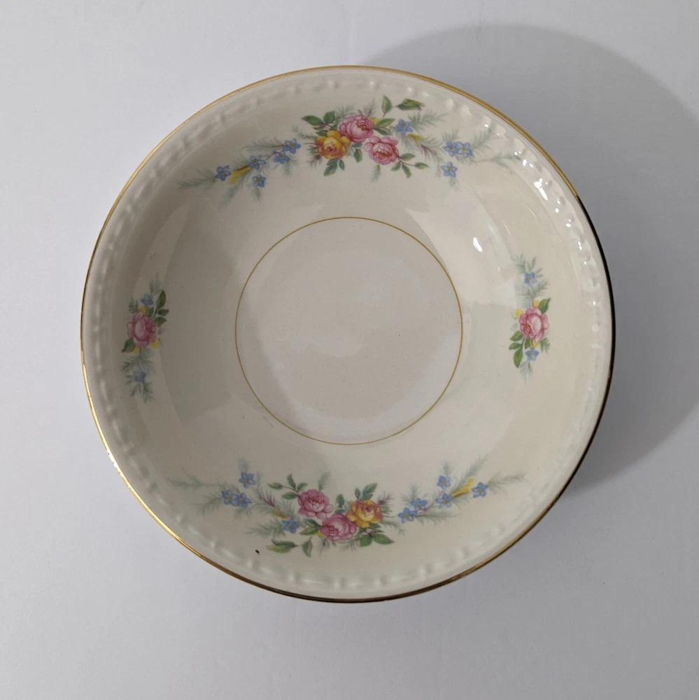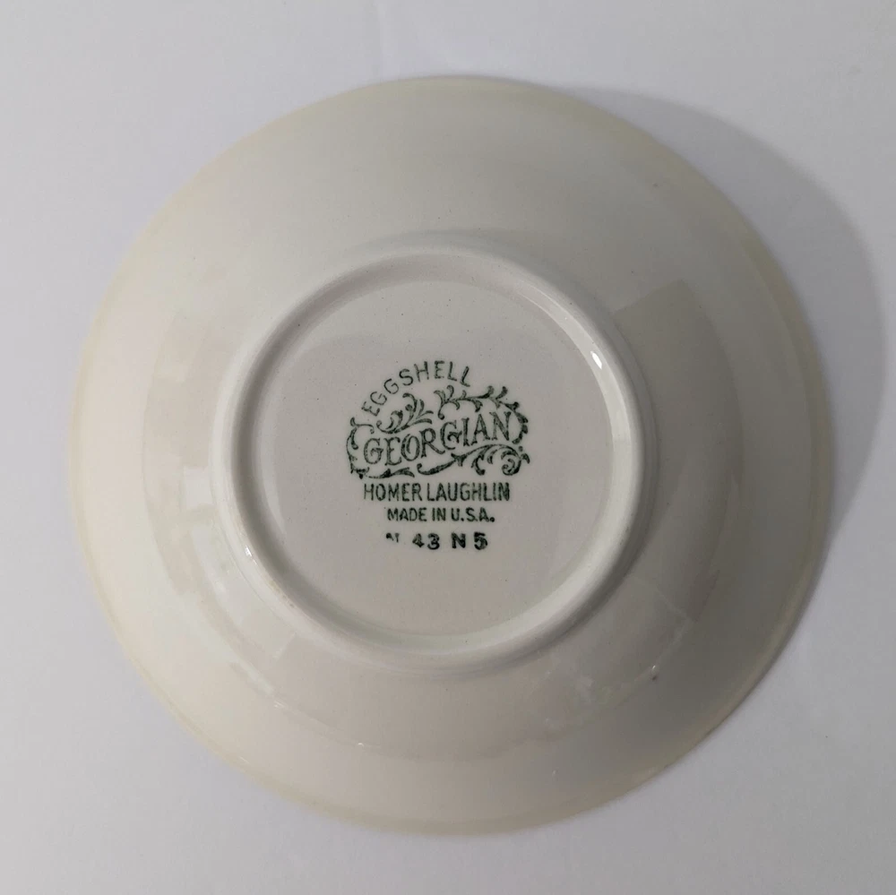 Homer Laughlin Ferndale Fruit Sauce Dessert Bowl 1943 Eggshell SET OF 4 - Lot 2 Good condition - may contain some crazing - no chips or cracks - see photos The last bowl has a scratch inside-see the last photo Bowls will ship USPS Priority Mail. I have several other pieces from this set. See my ebay store and view the category DISHES>HOMER LAUGHLIN
