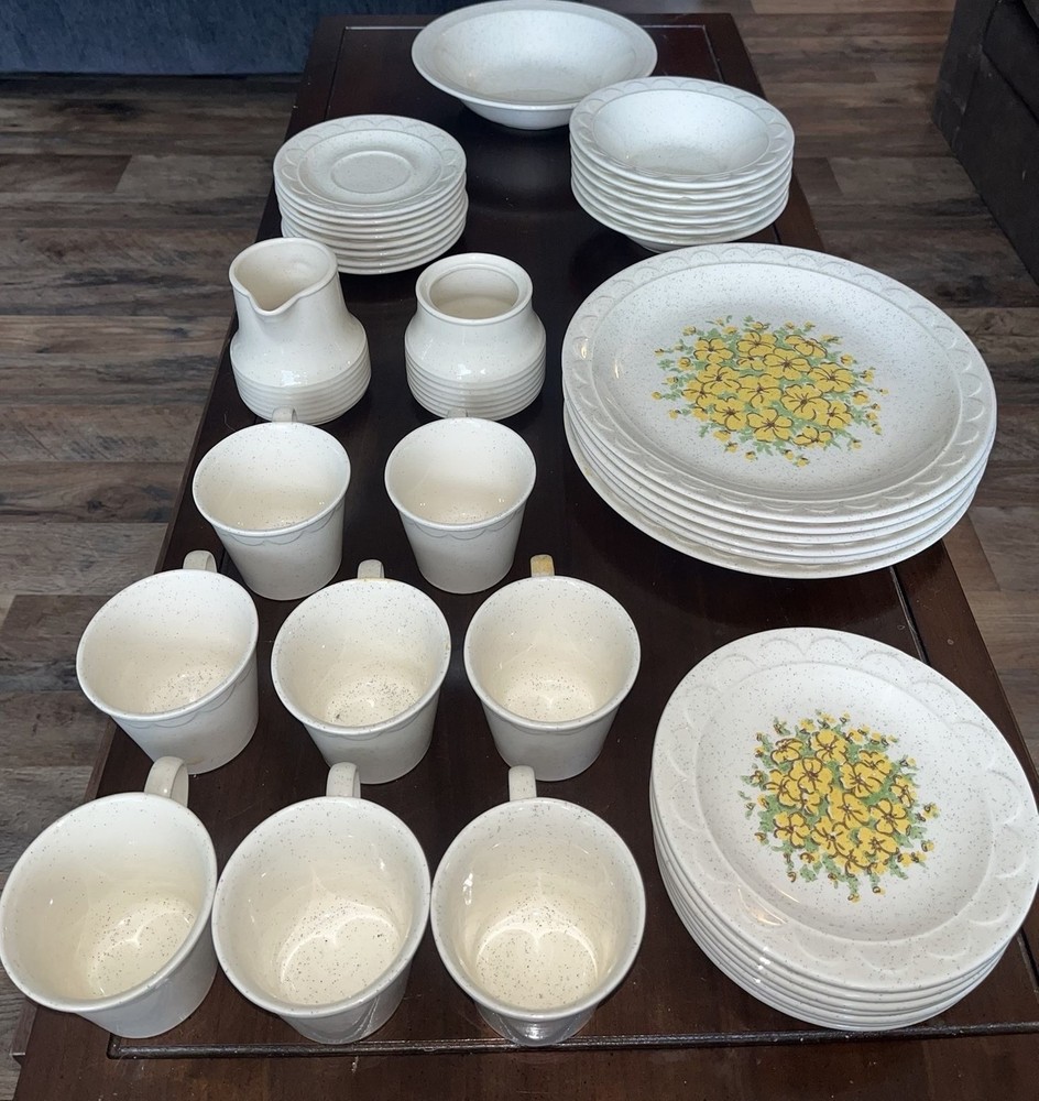 Homer Laughlin Floral Ceramic Dinner Set: Plates Bowls Cups Saucers Round