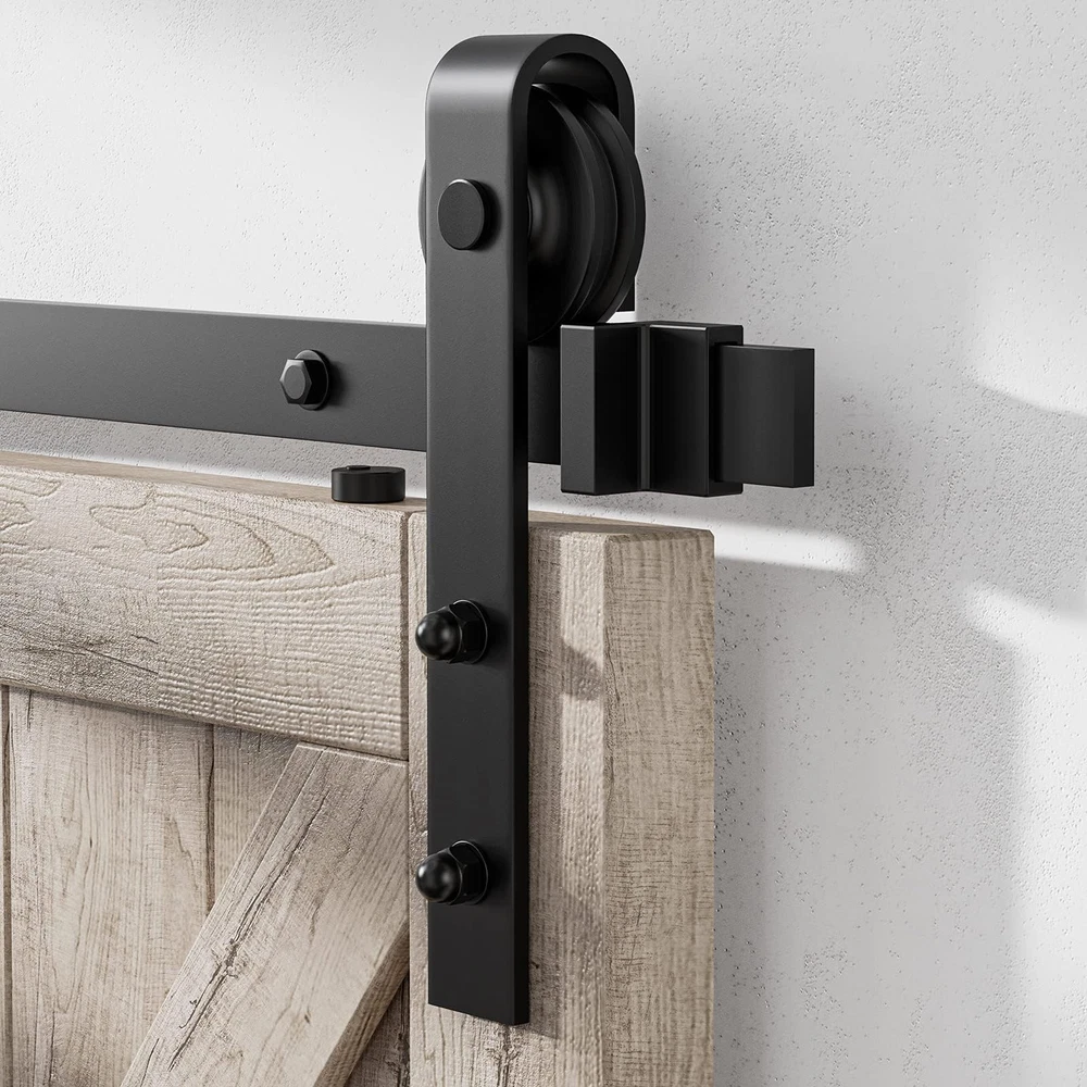 Hangers Desigh: The Sliding Barn Door Hardware Rollers is a set of hangers designed for compatibility with all types of Sliding Barn Door hardware kits. The J-Shape Hanger offers wide compatibility and can easily be integrated into your existing barn door setup. Steel Barn Door Hardware Rollers:These hangers are made from high-quality steel, ensuring durability and long-lasting performance. The wheel material is constructed using POM, known for its strength and smooth sliding capabilities. The frosted black surface treatment adds a sleek and modern finish to the hangers. Heavy Duty J-Shape Hangers: Specifically designed for barn doors, these hangers are suitable for door panel thicknesses ranging from 1 3/8" to 1 3/4". With a weight capacity of 240 lb, they provide stability and reliability even with heavier doors. The Package Includes: 2 X black J-shape hangers, 4 X 55mm and 4 X 60mm long door screws for secure installation, 2 X rubber ends for added protection and noise reduction, 1 X T-shaped floor guide for smooth door movement, and additional door screws for convenience. Reality and Stylish:With its wide compatibility, high-quality materials, and comprehensive package, the Sliding Barn Door Hardware Hangers Rollers offer a reliable and stylish solution for your barn door needs. Tips:The J-shape hangers package does not come with doors or panels.