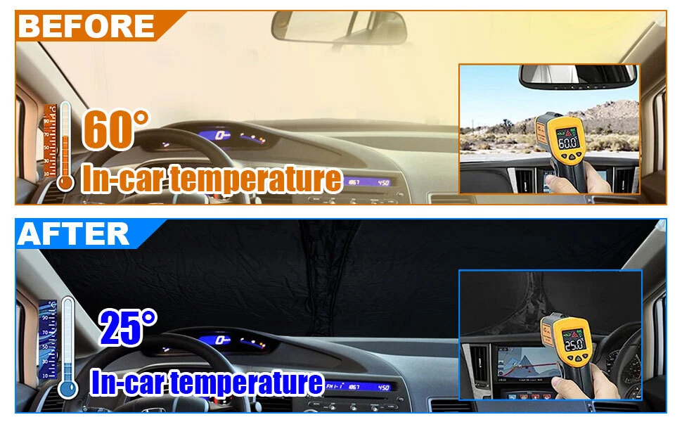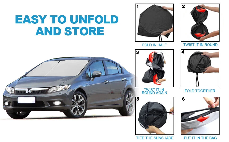 Front Windshield Sunshade Cover Sun Visor Shade UV Block For Honda Civic 2006-11 Fitment For Honda Civic 2006-2011 Features Custom Fit : Windshield Shade Cover custom fit for Honda Civic 2006 2007 2008 2009 2010 2011, Full covered your windshield,No Gap,Perfect fit. Double Thickness Material : Made of 210T Reflective Polyester, Sun Blocker is consist of both double reflective layers and double thermal insulating layers which can make shading and insulation more effective,Keeps your vehicle cool and protects against damage caused by hot sunlight. Air Condition Works Faster & Easier : Using less energy and gas instead of having to wait 15 minutes for your AC to cool off your car, the AC cools faster & easier. Saves your money while making your drive much more comfortable and enjoyable. Great Protection : With windscreen sun shade,it can protect car interior from harmful UV rays and heat that will fade dash and seats.Also when you travel by car or need a nap,our Custom fit Windshield Shades can block 99% sun shine and UV rays,give you and your family more protection. Easy to install & store : The foldable built-in elastic ring design allows you to prop the sunshade up in seconds with ease and fold-away storage making it convenient for daily use. Without falling off.Easy to twist, fold and store in the storage pouch. Specifications Product Name: Car sunshade Suitable for: Front Rear Windshield Material: Reflective Silver-Coated Nylon with foldable metal frame Color: Black + Silver Tone Net Weight: 190g Package Included 1 X Car Front Windshield Sunshade 1 X Sunshade Storage bag Payment We can accept payment of Paypal only. Payment should be made within 7 days after purchasing. (No payment orders eBay system will automatically open unpaid dispute, and this is not good to your account.) Shipping Item will be shipped out within 48 hours upon receipt of your cleared payment. We can not ship on Sundays and other public holidays. International Buyers Please Note: 1, Import duties, taxes and charges are not included in the item price or shipping charges. These charges are the buyer's responsibility. 2, Please check with your countrys customs office to determine what these additional costs will be prior to bidding/buying. Please make sure your address in paypal is correct. we will only follow your address listed in the Paypal payment for the shipment. Combine shipment is not allowed. If you want to combine all the items together, you should still pay for all of the shipping, insurance and handling fee! Returns We offer you 30 days return. The buyer is responsible for return shipping including a result of customer error or wrong item bought: 1) If you received an incorrect, damaged, defective, or item not as described, contact us for a partial/full refund or replacement on our cost. 2) If you want to return the item, please contact us within 60 days after package received. Return products must also be in its original condition: including box, packaging and all other accessories. Feedback 1.We are appreciated your business and to improve our customer service and our commitment to quality. 2.We will leave a positive feedback immediately after payment is received. We appreciate a positive feedback as much as you do. 3.If for some reason there is any issue with the purchase, please contact us prior to leaving feedback, and we will be glad to work with you to have it resolved. Contact Us We do appreciate your purchase from our store. If you are satisfied with the item as well as our service, please kindly leave us a Positive Feedback to help develop our business. Thank you in advance. Our office hours are MONDAY - FRIDAY 9:00PM - 18:00PM PST , we do not answer any E-mails or eBay messages on weekend. All E-mail or eBay message take us around 24 hours to respond. Thanks a lot. Front Windshield Sunshade Cover Sun Visor Shade UV Block For Honda Civic 2006-11 Fitment For Honda Civic 2006-2011 Features Custom Fit : Windshield Shade Cover custom fit for Honda Civic 2006 2007 2008 2009 2010 2011, Full covered your windshield,No Gap,Perfect fit. Double Thickness Material : Made of 210T Reflective Polyester, Sun Blocker is consist of both double reflective layers and double thermal insulating layers which can make shading and insulation more effective,Keeps your vehicle cool and protects against damage caused by hot sunlight. Air Condition Works Faster & Easier : Using less energy and gas instead of having to wait 15 minutes for your AC to cool off your car, the AC cools faster & easier. Saves your money while making your drive much more comfortable and enjoyable. Great Protection : With windscreen sun shade,it can protect car interior from harmful UV rays and heat that will fade dash and seats.Also when you travel by car or need a nap,our Custom fit Windshield Shades can block 99% sun shine and UV rays,give you and your family more protection. Easy to install & store : The foldable built-in elastic ring design allows you to prop the sunshade up in seconds with ease and fold-away storage making it convenient for daily use. Without falling off.Easy to twist, fold and store in the storage pouch. Specifications Product Name: Car sunshade Suitable for: Front Rear Windshield Material: Reflective Silver-Coated Nylon with foldable metal frame Color: Black + Silver Tone Net Weight: 190g Package Included 1 X Car Front Windshield Sunshade 1 X Sunshade Storage bag On Feb 2, 2025 at 04:38:16 PST, seller added the following information: