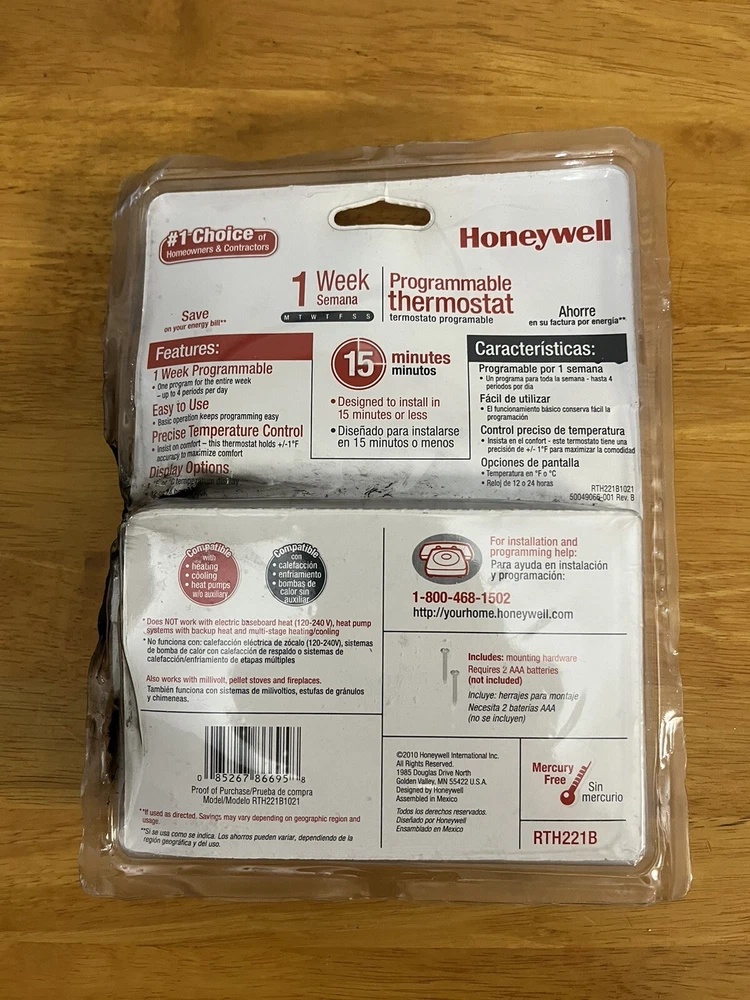Honeywell 1-Week Programmable Thermostat (RTH221B1039)