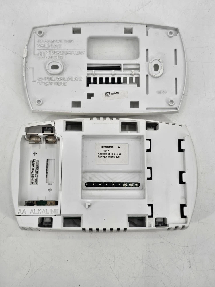 Battery Size: AA Mounting: Wall-Mounted Control Style: Digital Display Size: 1.5 in (3.8 cm) Color: White Programmability: Programmable Compatible Model: Na Material: Plastic Power Source: Battery Smart Home Compatibility: Na Voltage Type: Low Voltage Brand: Honeywell Smart Home Protocol: Na Compatible Brand: Honeywell Thermostat Programmable Days: 7- Day System Switching: Heat-Cool-Off Thermostat Shape: Rectangular Compatible Product: Honeywell Sensor Technology: Na Voltage: 24 V Model: Honeywell TH6110D MPN: Na Cool Stages: None