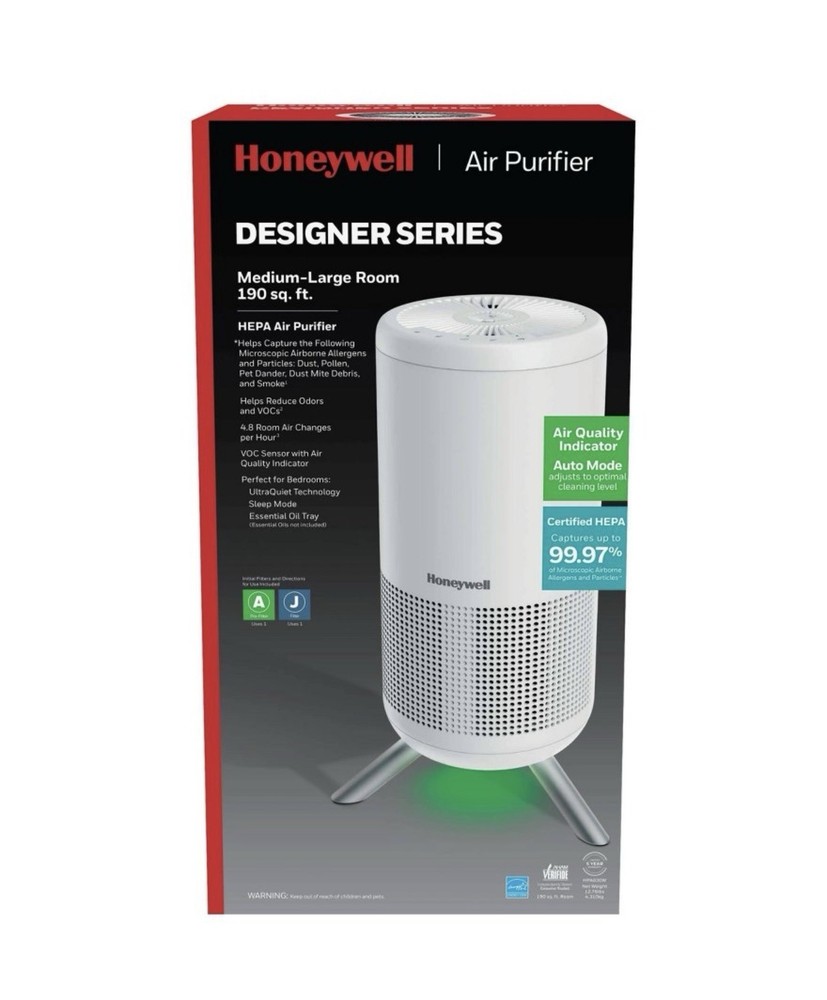 MPN:HPA830WFinish:Matte White Tower Designgtin13:328785008012Timer Control:YesFiltration Technology:True HEPA + Activated Carbon Pre-filterUPC:328785008012Color:WhiteBrand:HoneywellApplication:Indoor air purification for medium to large roomsType:HEPA Air Purifier (Tower)Sensor Technology:VOC sensor + Intelligent Air Quality SensorFeatures:360° HEPA filtration, activated carbon pre-filter, VOC sensorContaminants Captured:Dust, pollen, pet dander, smoke, mold sporesControl Style:Electronic touch controls with air quality indicator