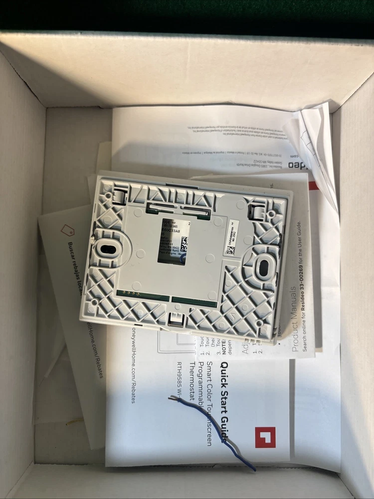 Honeywell Home RTH9585WF1004 Wi-Fi Smart Color Thermostat brings comfort and ease to managing your home's temperature. With its sleek silver plastic design, this thermostat is compatible with various systems including heat pumps, wall heaters, and underfloor heating. It features a 3-wire configuration, 24V voltage, and low voltage protection, making it a versatile option for your heating and cooling needs. This programmable thermostat is equipped with smart connectivity, allowing you to control it using Wi-Fi, Bluetooth, or Ethernet. It also supports popular smart home protocols such as Apple HomeKit, IFTTT, and Amazon Alexa. Its digital display, touch screen, and voice control options provide convenient access to its features, including energy report tracking, filter replacement indicators, and automatic shut-off. With its 7-day programmability and multiple control styles, including analog and mechanical, this thermostat is an excellent addition to any home.
