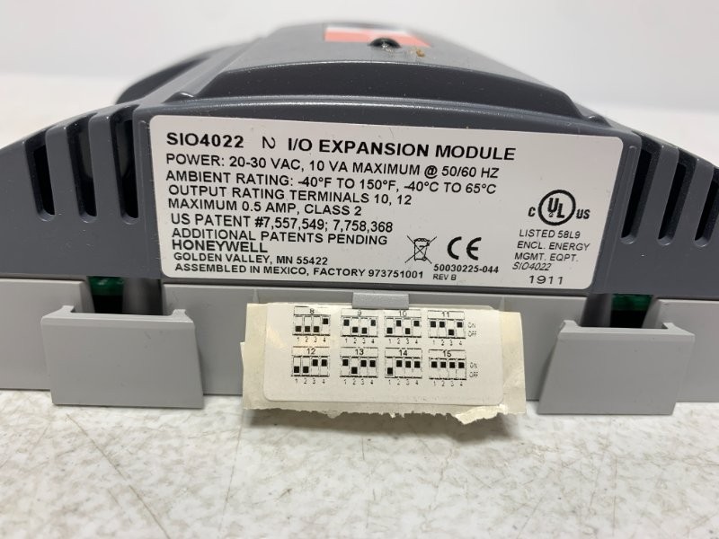 PRODUCT DESCRIPTION Honeywell SIO4022 IO Module 20-30VAC 10VA 0.5A This is a Used Honeywell SIO4022 IO Module 20-30VAC 10VA 0.5A. It is designed for seamless integration with the Spyder relay controllers using Sylk™ for communication. Product Details: • Brand: Honeywell • Manufacturer Part #: SIO4022 • Condition: Used • Power: 20-30 VAC, 10 VA Maximum @ 50/60 Hz • Ambient Rating: -40°F to 150°F, -40°C to 65°C • Output Rating Terminals: 10, 12, Maximum 0.5 Amp, Class 2 Shipping: Will ship UPS Ground - Free Shipping. Expedited shipping options available at checkout. Find one of our products cheaper elsewhere? We will beat the price. Feel free to make an offer. © 2026 Chase Surplus, Inc. Generated by Kaizen Seller