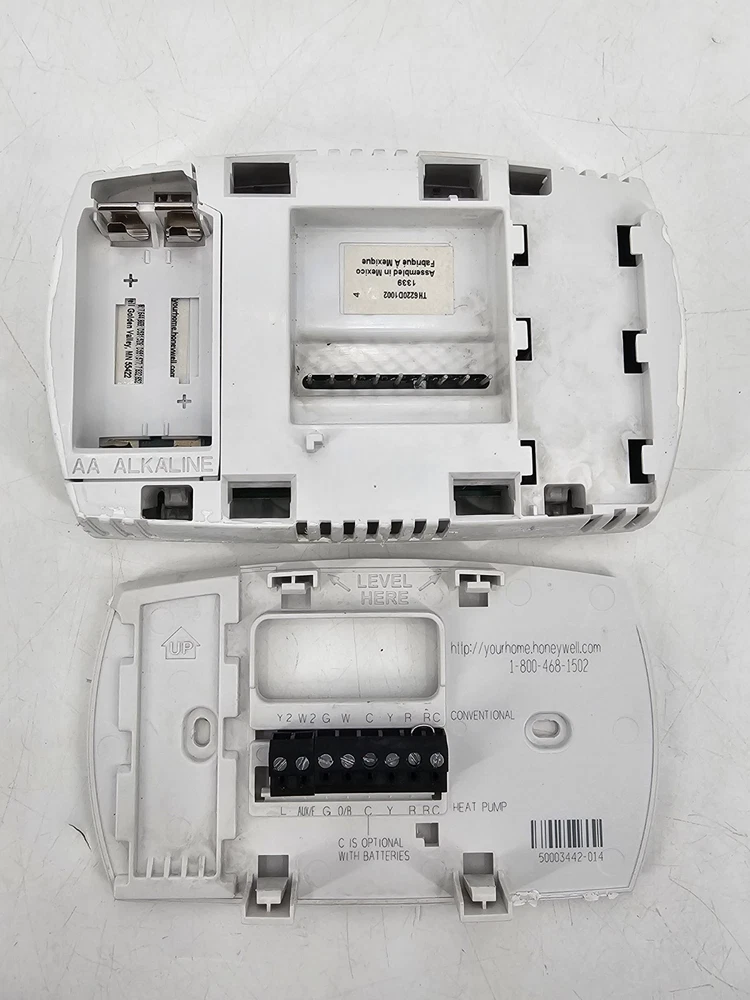 Power Source: Battery Country/Region of Manufacture: Mexico Mounting: Surface-Mounted, Wall-Mounted Cool Stages: 2 Compatible Product: Universal System Switching: No Protection Properties: Anti-island Protection Voltage Type: Low Voltage UPC: 0085267262019 Display Size: 2.08 in (5.3 cm) Year Manufactured: 2006 Programmability: Programmable Battery Size: AA Manufacturer Warranty: 5 Years Control Style: Analog/Mechanical Compatible Model: Universal Thermostat Programmable Days: 7 Model: Honeywell TH6220D gtin13: 0085267262019 Thermostat Shape: Rectangular Compatible Brand: Most Heating, Cooling, AND Heat Pump System Color: White Voltage: 24 V Wire Configuration: 2-Wire Number of Periods per Programmable Day: 7 and more Heat Stages: 2 Brand: Honeywell MPN: TH6220D1002 Features: Digital Display Sensor Technology: Temperature Material: Aluminum, Plastic Items Included: Trim Plate Resistance Properties: Abrasion Resistant