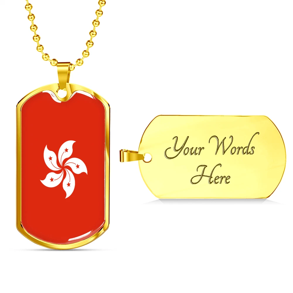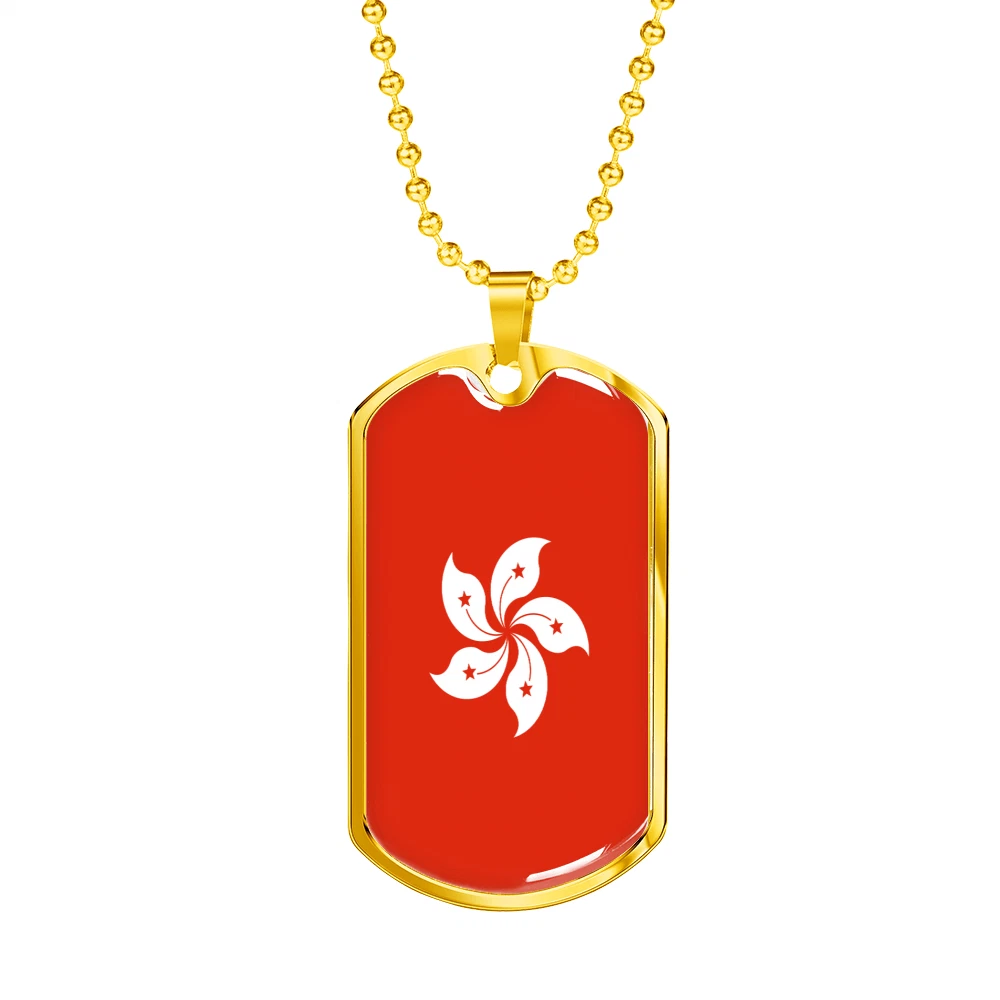 Hongkong Flag Necklace Stainless Steel or 18k Gold Dog Tag 24" Chain
