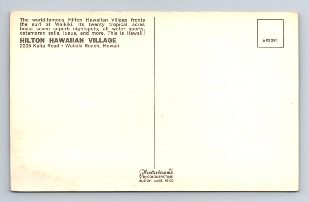 Honolulu HI-Hawaii, Hilton Hawaiian Village, Waikiki Beach Vintage Postcard