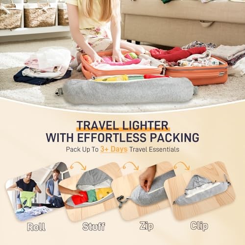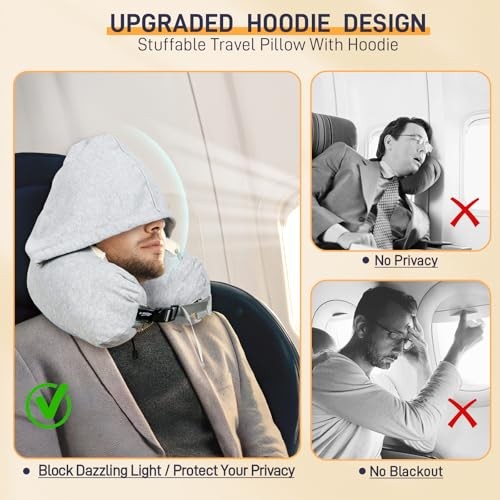 This travel pillow is a game-changer! Super soft and lightweight, yet provides amazing neck support when stuffed with clothes. The hood is a genius addition—keeps me cozy and blocks out light. Super easy to pack, saves so much luggage space. Fast shipping and great quality—highly recommend for long flights!