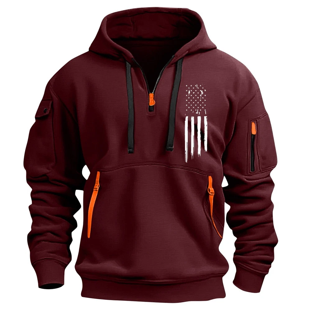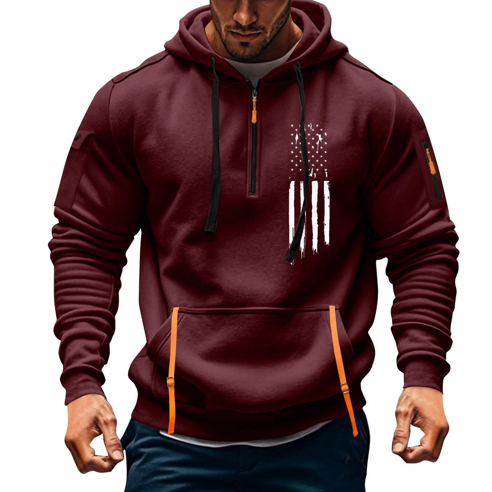 Features: Breathable Material: Polyester Style: Pullover Personalize: No Theme: American Type: Hoodie Vintage: Yes Garment Care: Machine Washable Size: M,L,XL,2XL,3XL Color: Wine,Royal Blue,Navy,Black,Dark Gray,Light Gray,White,Khaki Closure: Drawstring,Zip Fit: Regular Fabric Type: 100% Polyester Brand: Men's Hoodie Size Type: Regular Department: Men Season: Winter,Fall,Spring Performance/Activity: Running & Jogging Accents: Zipper Pattern: Solid