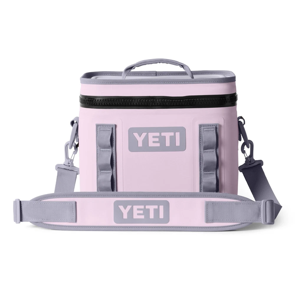 Hopper Flip 8 Soft Cooler Perfectly sized for your cold food and drinks during a solo journey in the great outdoors, the YETI Hopper Flip 8 soft cooler lets you travel light. It offers legendary YETI insulation and durability. Features Waterproof, tough-as-nails DryHide™ shell stands up to rough use in the wild with resistance to punctures, mildew and UV rays ColdCell™ closed-cell rubber foam offers superior insulation over ordinary soft coolers Liner is made of FDA-approved food-grade material Wide, flip-top opening with leakproof HydroLok™ zipper allows easy loading and access Double-stitched top handle is easy to grab on the go Wide, ergonomic shoulder strap lets you carry your refreshments in comfort HitchPoint™ grids let you easily attach a MOLLE bottle opener, Zinger or other accessories (not included) Cubed shape makes the cooler easy to load, haul and store Interior dimensions: 9.75 x 7.5 x 6.25 (L x H x W) Technical Specs Best Use Camping Gear Capacity (L) 7.9 liters Gear Capacity (cu. in.) 482 cubic inches Material(s) 840-denier double-sided thermoplastic urethane/foam insulation/EVA Dimensions 11.5 x 10.5 x 8 inches Weight 2.8 pounds