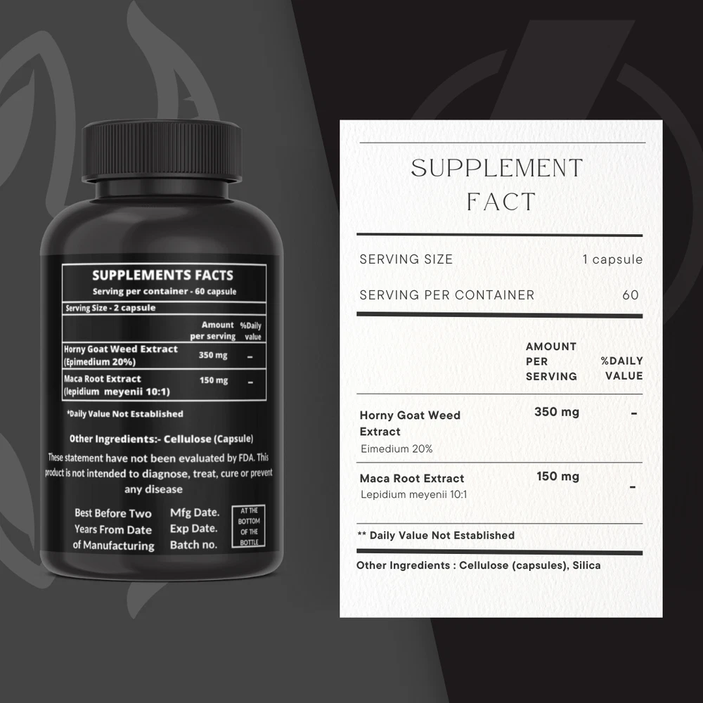 Heroot Horny Goat Weed Powder with Maca Root Extract Horny Goat Weed + Maca Root Tablet aids in the development of a healthy libido in both men and women, as well as the improvement of physical stamina. It contains horny goat weed, a plant that may help with blood flow and sexual health. It helps with back and knee pain, joint pain, osteoarthritis, mental and physical tiredness, memory loss and high blood pressure. It boosts the body's endurance and performance while also helping to combat oxidative stress. Key Ingredients: Horny goat weed Maca root extract Key Benefits: Horny Goat Weed + Maca Root Tablet is beneficial for increasing healthy libido in men and women and also helps to improve body stamina It contains horny goat weed which may aid in the improvement of blood flow and sexual wellness It aids in the treatment of weak backs and knees, joint discomfort, osteoarthritis, mental and physical exhaustion, memory loss, and high blood pressure It improves the body's stamina and performance while also assisting in the battle against oxidative stress. Directions For Use: As a dietary supplement, take one capsule per day with water or as recommended by your healthcare provider. Safety Information: Store in a cool dry place Keep out of reach of children If you are pregnant or lactating or prone to any food allergy or under any medical condition consult your healthcare practitioner before use Disclaimer The above description is for information and knowledge purpose, not a healthcare professional advice. Please consult your doctor and/or pharmacist before you take this vitamin. Pregnant or lactating women, diabetics, hypoglycemics, and people with known medical conditions and/or taking drugs, should consult with a licensed physician and/or pharmacist prior to starting any supplementation program. The above statements have not been evaluated by the Food & Drug Administration. Shipping and Handling Shipping time will be 1 business day after the cleared payment We will ship by Indian Post service Shipment will take 15-30 days. Few more days for your local customs delay and formalities. For Express service additional charges will be applied. For any reason you wish to leave Negative or neutral feedback, Please contact us first and let us mutually resolve it. We care for your satisfaction and will make sure that you are happy with the transaction to post us 5**** ratings in all areas. ***Customs Information*** Heroot will not be liable for packages refused or held by customs for delivery. We request that you contact customs office and ask about import regulations and restrictions before placing your order. It is importsnt for you to become familiar with customs policies for your specific country before ordering. Customs regulations differ by country and not knowing their regulations can result in your order incurring high import duties, the delivery being delayed or even returned. Please check with your customs office to see if your country permits the shipment of the products you are planning to order from us and if any additional licenses or permits are needed. Please note: if your order is returned to us due to banned/ restricted products policy, a wrong address, refusal to pay customs fees, refusal to accept the order or because no one was there to accept the delivery of your order, we will refund your order as follow: you will be refunded the total amount of the order, minus the original shipping charge