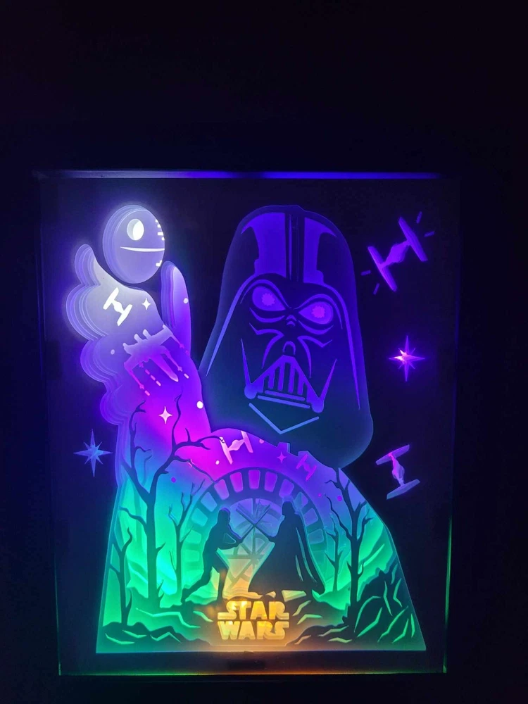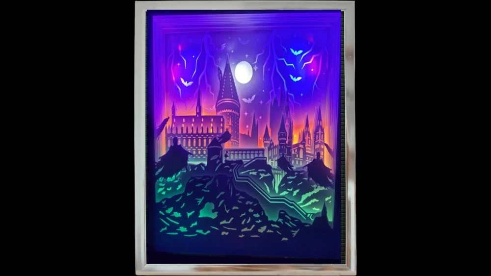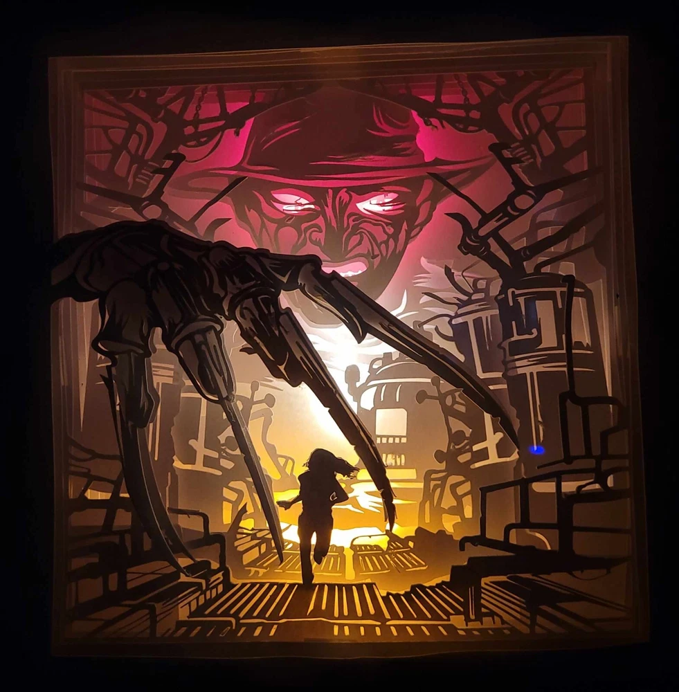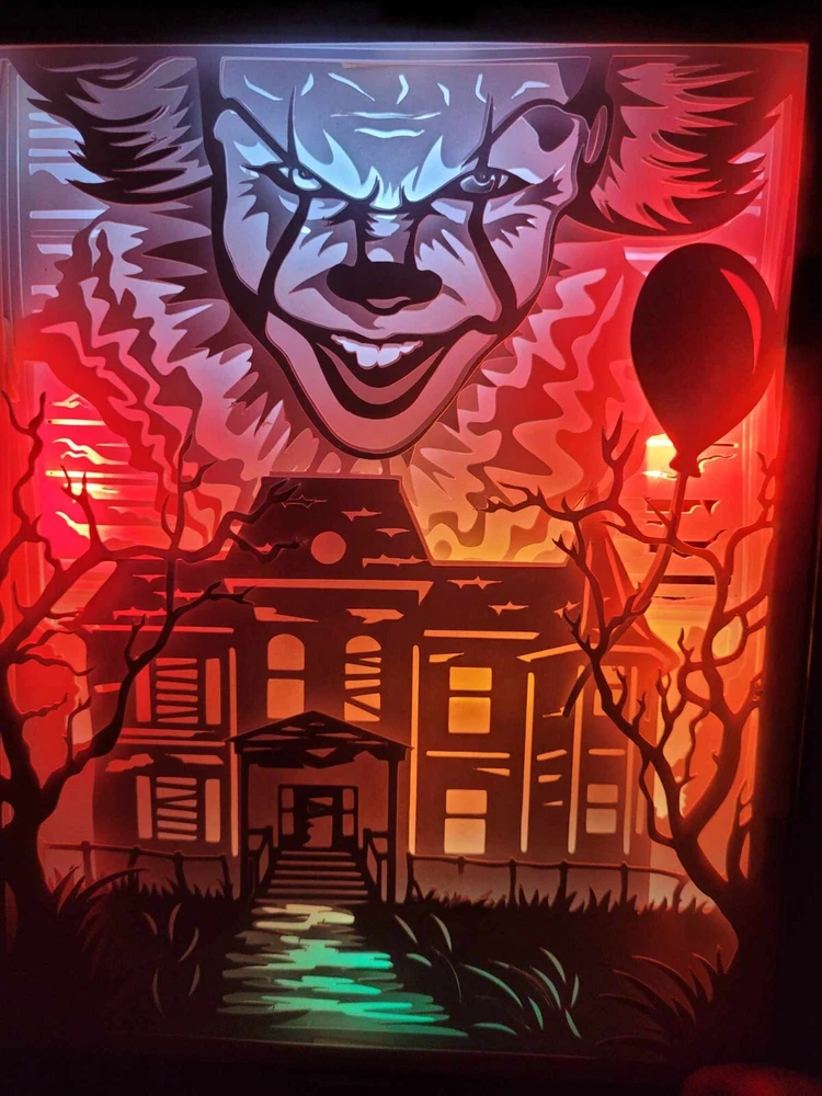 Handcrafted 3D Art LED Light Boxes | Choose from 13+ Stunning Designs Transform your space with these mesmerizing 3D Art LED Light Boxes! Each light box is a handmade masterpiece, featuring high-quality, multi-layered cardstock meticulously cut to create breathtaking depth and a vibrant 3D effect. Backlit with hand-wired LED lights , these pieces illuminate beautifully, making them the perfect centerpiece for any room. 🌟 Features: Designs to Suit Every Fan : Choose from 13+ iconic themes, including Pennywise , Jason Voorhees , Michael Myers , Star Wars , Batman , Eddie Munson , Doctor Who , Nightmare Before Christmas , Hocus Pocus , Pinhead/Hellraiser , Freddy Krueger , and Harry Potter/Hogwarts Castle . Elegant Display : Encased in a deep black solid wood and glass shadow box for a sophisticated, gallery-quality finish. Perfect Size : Standard Size measures 8x10 inches and JUMBO size measures a whopping 10x10x3.5! Ideal for desks, shelves, or walls. Plug & Play : Comes with a 12v power plug for easy setup and long-lasting illumination. Made to Order : Each light box is handcrafted with care , ensuring unparalleled quality and attention to detail. 🎁 Perfect Gift Idea : Whether you’re shopping for a collector, a pop culture fan, or someone who loves unique home decor, these LED light boxes make a stunning, memorable gift. 📦 Fast Shipping & Secure Packaging : Upon ordering, we will get to work on making your piece as fast as possible! Every piece is carefully packaged to ensure it arrives in pristine condition. 💡 Bring your favorite characters and scenes to life with a handcrafted LED light box that blends artistic craftsmanship with the magic of illumination. Order yours today and let your fandom shine!