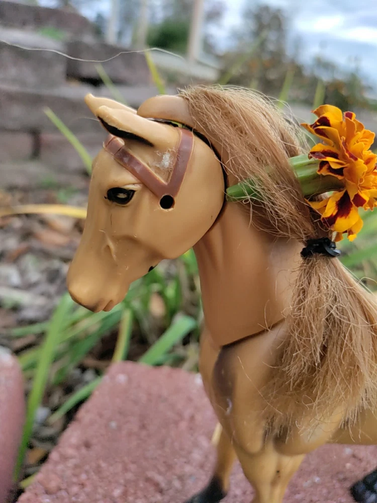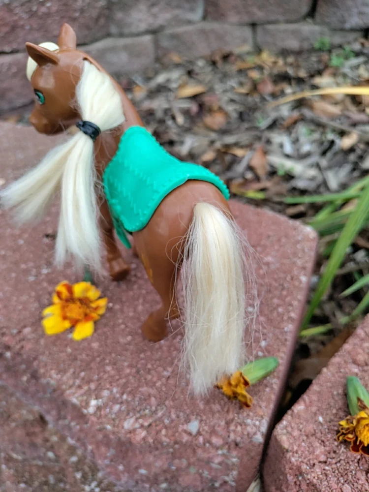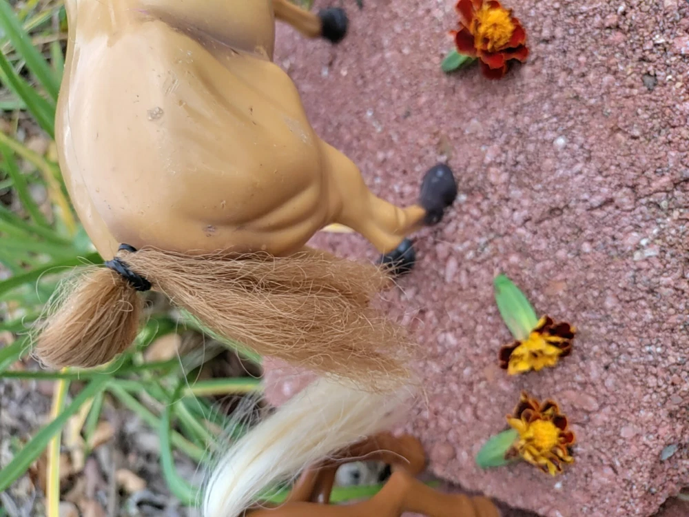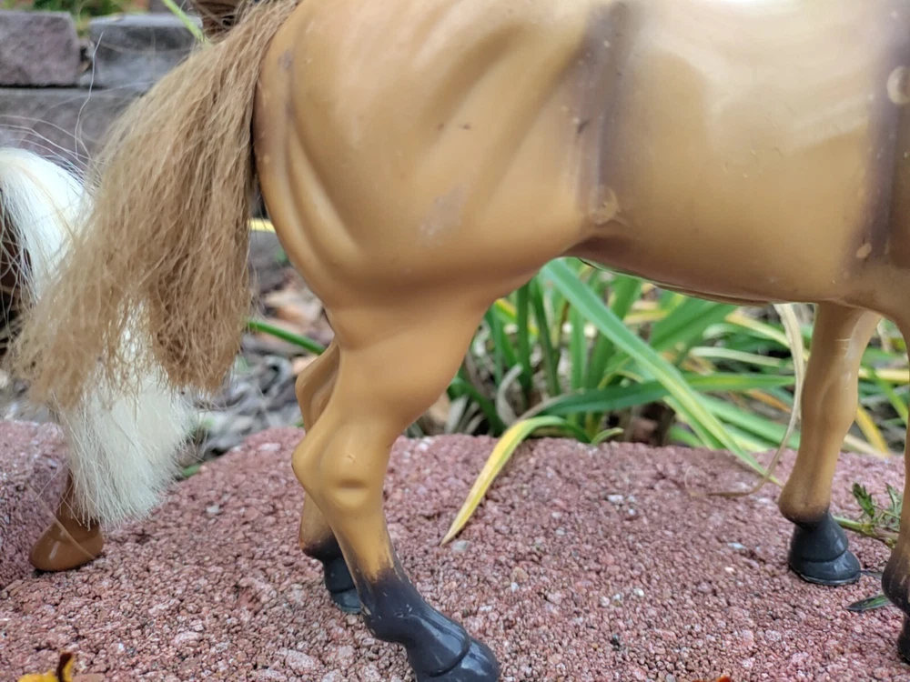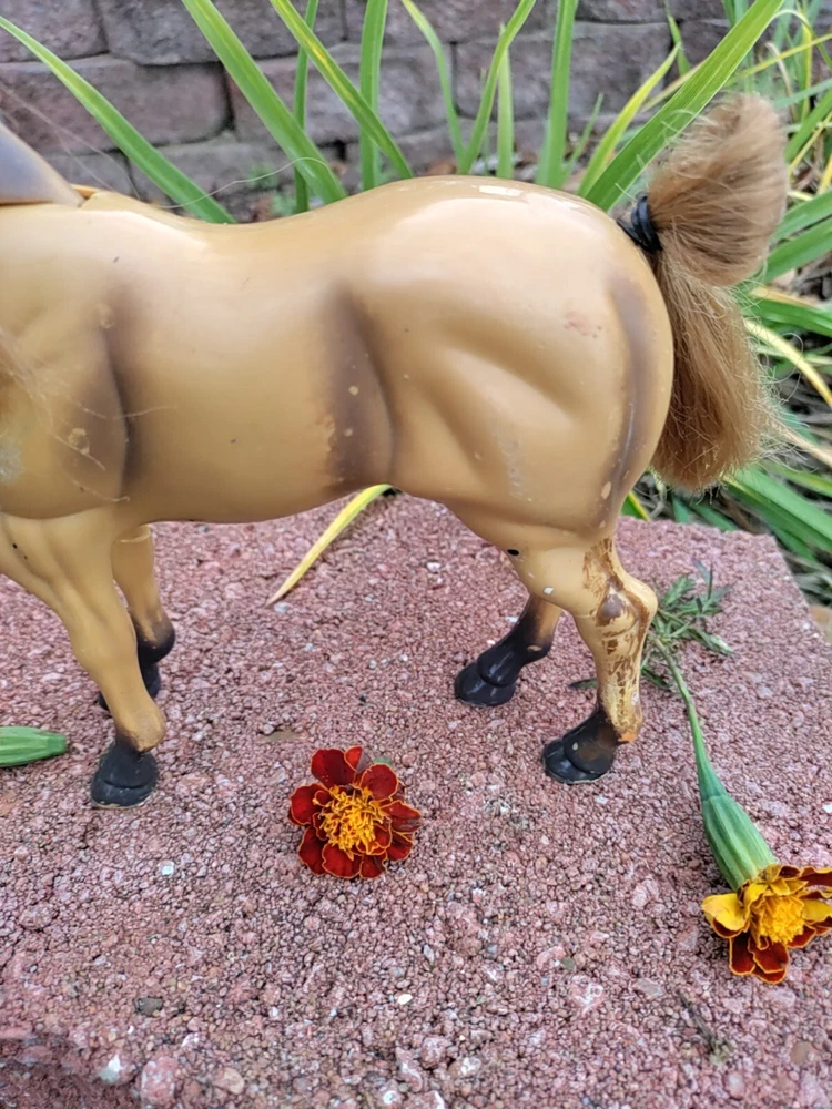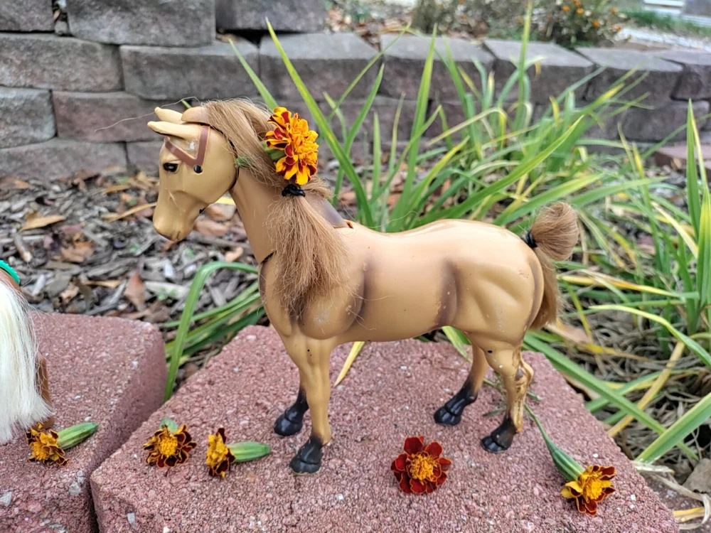 Feast you eyes on this amazing Horse and Foal Lot of Two!! With this amazing lot go on adventures of your own!! This lot includes a horse and a Foal. The horse has some hot glue marks and its hair is frizzy. The sound function does not work because I have not replaced the batteries but it might if replaced. There are also paint marks. But it is in really good condition other than that. Flowers are NOT included. As far as the Foal it is in mint condition with only a paint mark on its muzzle. The saddle is removable and the hair is just a little fuzzy. Their hair is styled too. Thank for checking it out and happy shopping!!