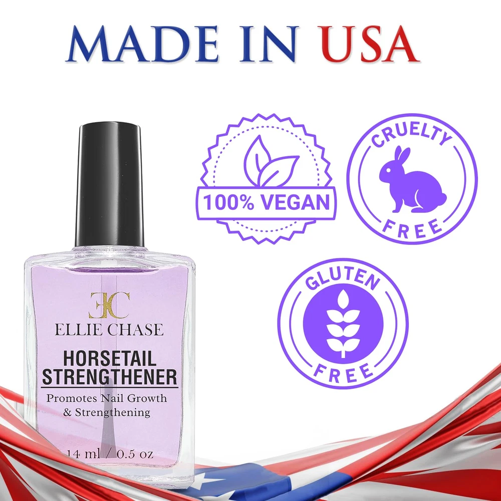 Horsetail Nail Strengthener, Growth, Hardener, Repair Treatment Polish Product Details Multi-purpose treatment that can be used as a top coat or base coat to prepare the nail surface for optimal polish application or used on its own as a nail treatment Works great on nails that break, peel, crack, chip, split and have no flexibility Specialized formula helps grow, condition, strengthen & harden nails that are soft, weak, thin & brittle Horsetail is rich in nutrients & high in silica so it accelerates nail growth by strengthening & protecting the nail plate so nails can grow longer, thicker & harder Intensive treatment absorbs into the nails giving them extra strength & protection so they can be restored to their natural healthy shine. Made in the USA.- Cruelty Free, Fragrance Free, Non-Toxic, Organic, Vegan Friendly Product Description Item model number 03229 Product Dimensions 1.6 x 0.8 x 3.15 inches; 1.8 ounces Country of Origin USA Specialty Shine Enhancing, Strengthening, Color Enhancing, Nail Repair, nail growth Item Weight 1.8 Ounces Liquid Volume 0.5 Fluid Ounces Item Form Liquid 0.8 inches x 1.6 inches x 3.15 inches. Weight: 1.8 oz Payment Details We accept all payments via Ebay using Credit Cards , PAYPAL , Apple Pay and many others Shipping Details We are always working hard to ensure your package arrives as soon as possible. Please understand that some factors like weather, high postal traffic, and the performance of shipping companies are outside of our control. Delivery & Return Policy Details We offer a 30-Day Return Policy on items in which you are not completely satisfied with. You have the option of a full-refund or an exchange of the item. No returns are available on items shipped outside of the USA.