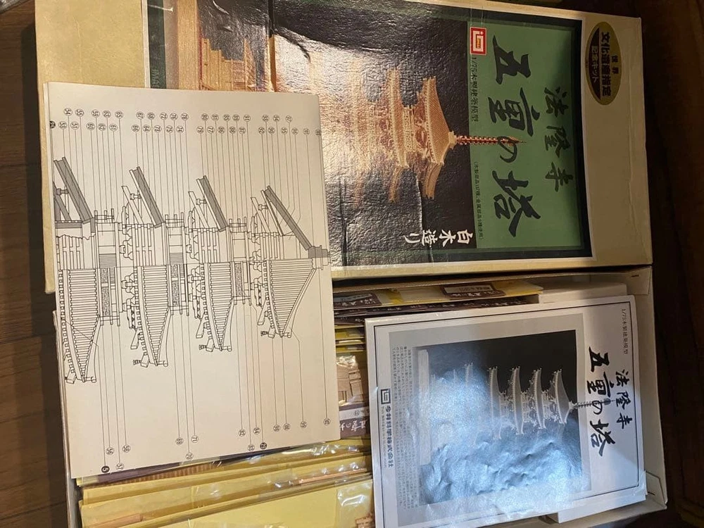 Horyuji Five-story Pagoda Wooden Assembly Kit World Cultural Heritage Designated as a World Cultural Heritage Site, White Wood Painted Building Model