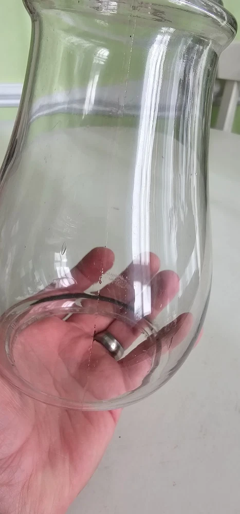 Clear hot blast globe. Measures just over 6 and 5/8" tall. Other measurements in pictures. Please review/ zoom all photographs and read condition description before bidding as they are included in the description of the condition and quality of the globe. Globe is used and as with most vintage/ antique glass, buyer should expect to see signs of use and also production remnants including but not limited to: captured bubbles and impurities, seams and straw marks, and rough rims from grinding. I've got other globes listed and am happy to combine shipping, please request invoice before paying. Globe ships promptly via usps or local pickup in Raleigh. Thanks for looking and happy shopping!!