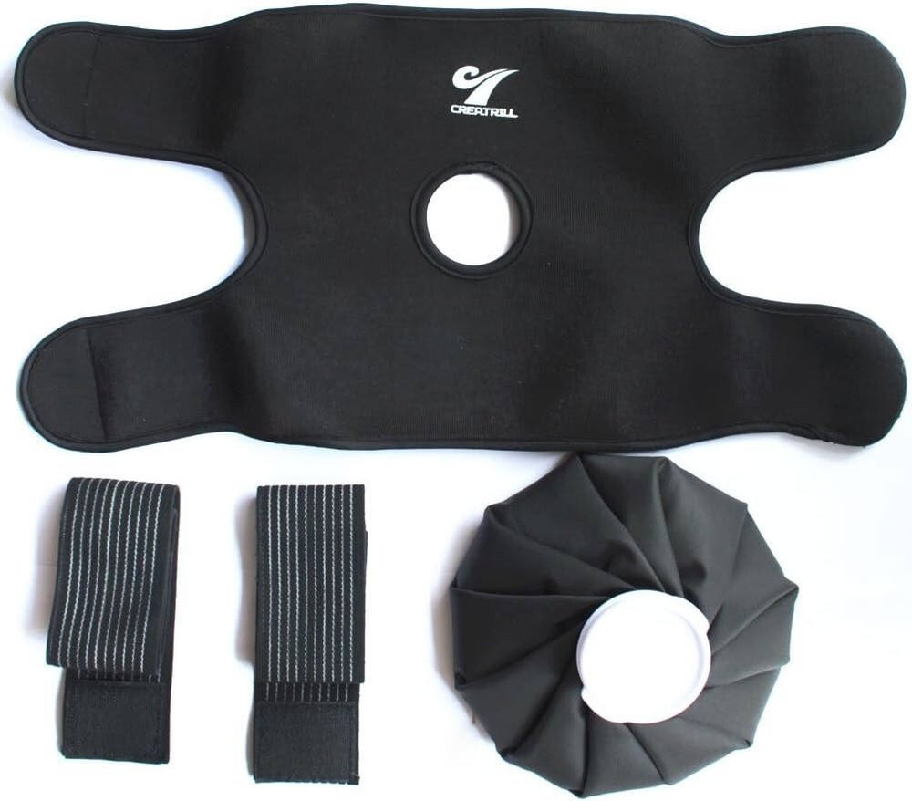 Hot Cold Therapy Ice Bag Pack (9") Neoprene Core Wrap with Elastic Strap, Portab Description : Ideal for acute and chronic injury recovery & rehabilitation with hot/cold therapy available. Cold therapy applies in symptoms of Swelling and inflammation, Bruising, Pain, etc.; Hot therapy applies in Healing, Joint/muscle stiffness, Pain, etc. Top quality therapy Wrap (22.8" * 10.6") provide you with the most comfortable form fitting therapy possible. It is constructed from imitated velvet surface, latex free & durable neoprene core and two elastic bands (23.6" to 37"). Large designed size is ideal for treatment of rotator cuff, shoulder, back and knee pain; etc. Highest quality reusable & economical ice bag (9") is Non-toxic, insipidity, safe and easy to use. It is made of waterproof, soft touch rubberized fabric, superior leak resistant cap with large cap opening to allow for easy filling of ice cubes or crushed ice, and pleated fabric design enables the ice bag to contour around any body part.