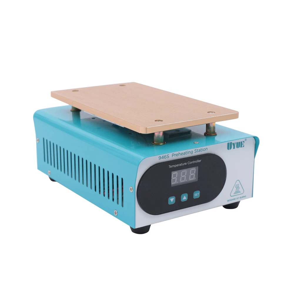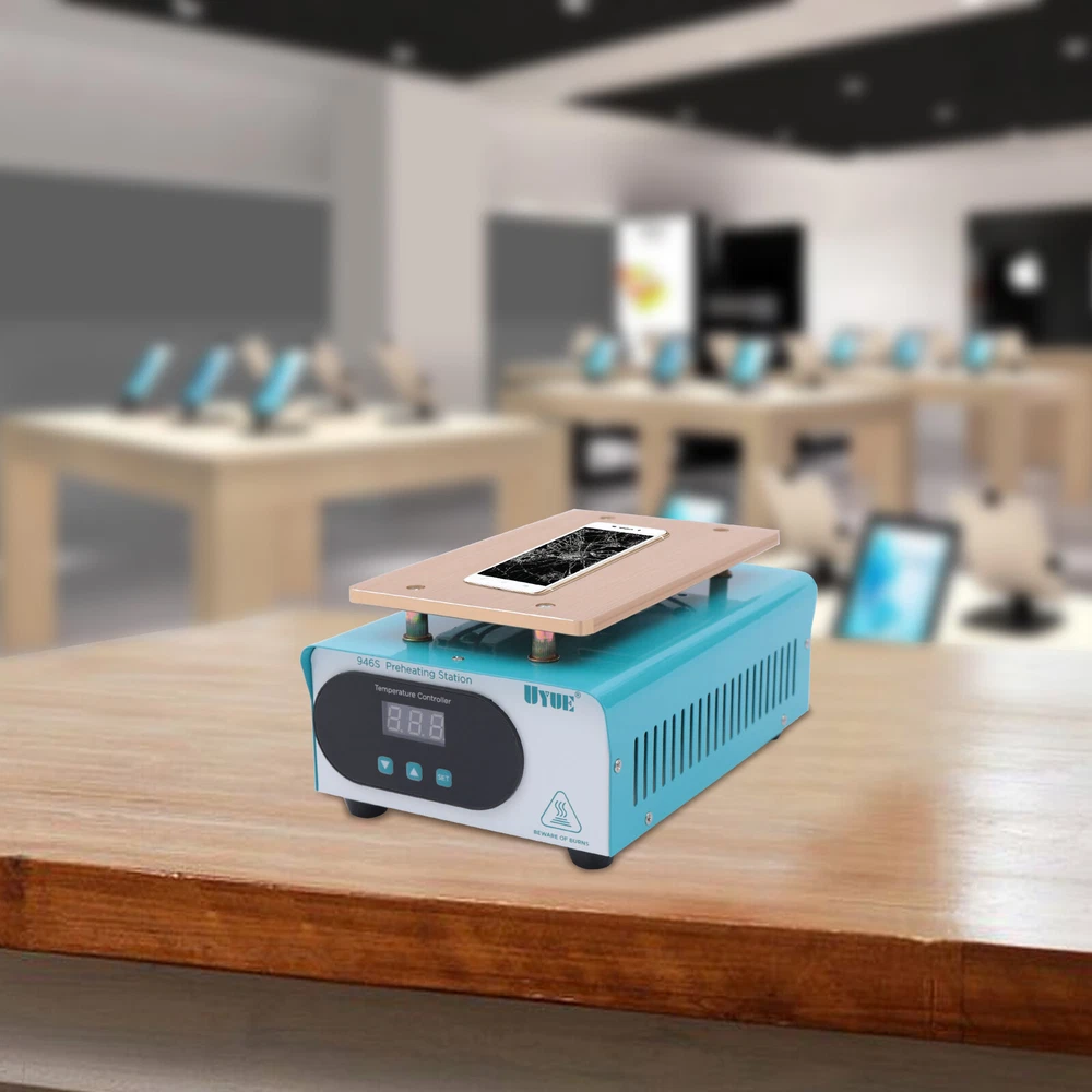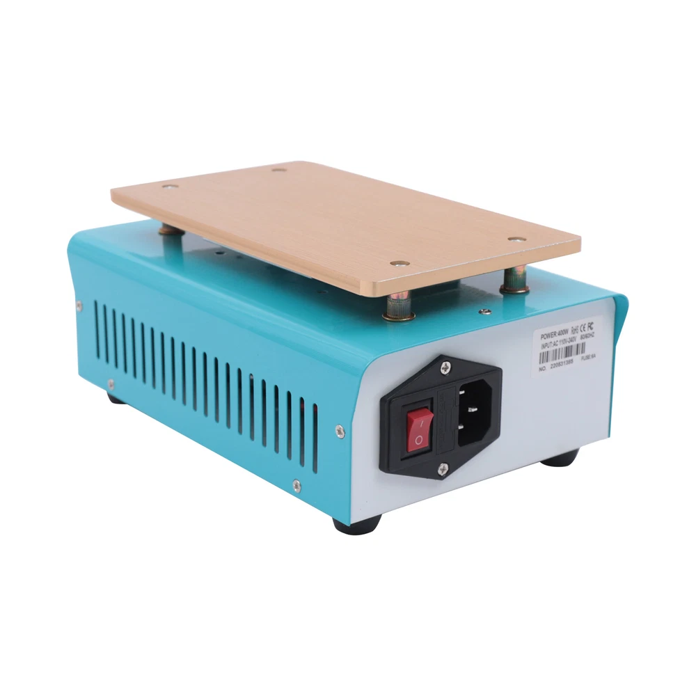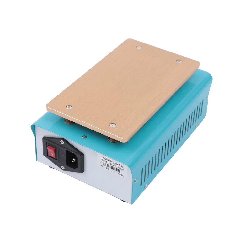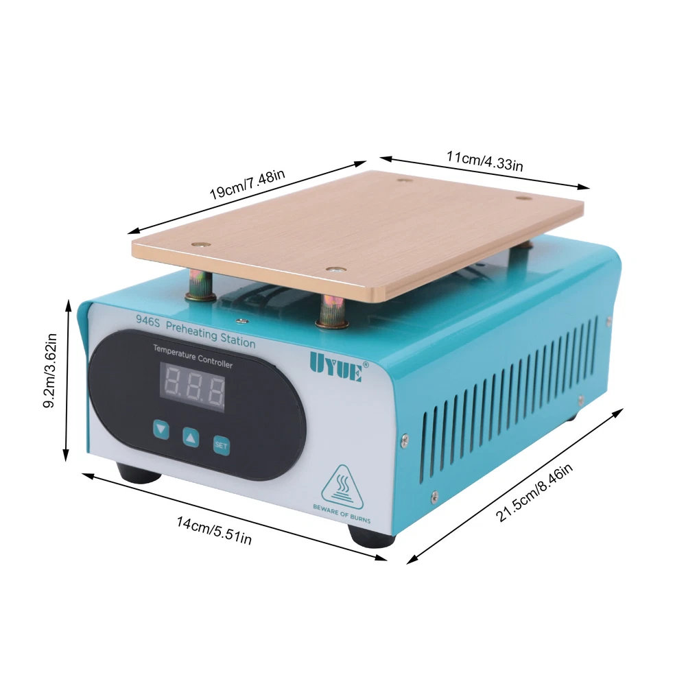 Hot Plate Preheat Repair Heating Station Cell Phone LCD Screen Separator 110V US Description There is a high chance that the phone screen is broken just the surface lens is broken, not the LCD screen inside it. With this screen separator, you can greatly reduce the cost of changing your screen. This machine uses a PTC heater and an aluminum heating plate, which heats up quickly and is very simple to operate, even if you do not know the circuit or the brush can easily operate. How to Use 1. Press the "SET" key to enter the temperature preset mode. 2. Press the"▲" or "▼" key to adjust the temperature up or down. 3. Press the "SET" key again to confirm after presetting the temperature. Specification Model: 946S Color: Blue Plug: US Voltage: 110V Power: 400W Heat Area: 190*110mm/7.48*4.33inch Plug: US Standard Display: LED Digital Screen Heat Generation Mode: PTC Heating Element Temperature Range: 50-180℃/122-356℉ Material: Iron, Aluminum Surface Treatment: Painting, Oxidation Gross Weight: 1.72kg/3.79lbs Package Size: 25.5*20*13.5cm/10.04*7.87*5.31inch Package Included 1* LCD Separator Machine 1* Power Cord 1*English Manual Key Features Sturdy and Durable: Its body is made of high-quality iron through painting, making it hard and not easily damaged. The aluminum heating plate has high strength and good corrosion resistance after oxidation, so it can be used for a long time. Precise Temperature Control: You can select the right temperature with the temperature adjustment key for more precise temperature control to make screen separation easier. The LED display allows you to observe the temperature better. High Performance: The screen separator machine has a built-in PTC heater that heats up quickly, so that the screen can start separating in 3-5 minutes of preheating. The heating plate is made of aluminum, which conducts heat quickly and evenly, making the machine work more efficiently. Good Heat Dissipation: Multiple cooling holes on the housing ensure better cooling performance and more stable operation in high-temperature environments. High Compatibility: It has a large heating plate size of 7.48*4.33inch and is suitable for all brands of mobile phones with a screen size of less than 8". Save Money: This machine separates the broken glass from the LCD, and if the LCD is still working well, you only need to replace one glass screen instead of the entire screen assembly, which saves you money. Safe to Use: The machine is equipped with a built-in fuse to ensure that the machine will not burn out during operation, which guarantees the safety of the use process. Quality Service: We stand behind all our guests and look forward to assisting you with your purchase. It is our pleasure to answer your confusion and questions. So please feel free to contact us if you have any problems with the product. Details One-touch Start Button: This screen separator is designed with a one-touch start button for your convenience. And the power jacks and switches of the machine are located on the back of the machine, adjacent to each other, making it more convenient for you to operate. Rounded Corners: The corners of the machine are rounded to effectively avoid scratching your hands during operation. Anti-slip Foot Pads: There are four anti-slip foot pads on the bottom to make the machine more stable during work. Application It is a machine for repairing damaged screens by separating the LCD from the lens. It is suitable for all brands of mobile phones with a screen size of fewer than 8 inches. Notes When you are a new repairer, we suggest you better practice your skills with some damaged LCD components. Please allow the slight color difference caused by the shooting light and 1-3cm error due to manual measurement, and make sure you do not mind before ordering. Payment Delivery details Terms of sales About us Contact us Payment We accept ebay payment 。 Fees such as import duties, taxes are not included in the item price or shipping costs. These charges are the buyer's responsibility. Delivery details Shipping: 2-9 working days to: USA Terms of sales We maintain high standards of excellence and strive for hundred percent customer satisfaction. Feedback is very important to us. We hope that you contact us immediately before you give neutral or negative feedback, so that we can address your concerns. It is impossible to address issues if we do not know about them! About us Your satis faction is our ultimate goal. We work hard to earn your trust and future business. Our certified technicians have tested each item before shipping. The unit comes with 1 year limited warranty on all manufacturing defects. a) If you receive a defective item, you may return it or ask for a discount. Please contact us within 14 days after you receive the package. b) What you returned must be intact and in its original packaging as re? u. Customer is responsible for shipping costs of the returned item. c) We will cover the cost of shipping back t with the shipping rate indicated in the registration page. We will send you a new unit or refund the full payment you paid. Thank you. Contact us Business Hour Business Hour: Monday To Friday: 8:30 AM to 5:00 PM (Beijing China time) Due to time zones, our reply to your questions may not be immediately. But within above working time, we will reply your email within 24 hours. If it's non-workdays, please kindly be patient and wait till Monday. Please contact us with ebay message. Please feel free to contact us if you have any questions. Monday To Friday: 8:30 AM to 5:00 PM (Beijing China time) Due to time zones, our reply to your questions may not be immediately. But within above working time, we will reply your email within 24 hours. If it's non-workdays, please kindly be patient and wait till Monday. Please contact us with ebay message. Please feel free to contact us if you have any questions.