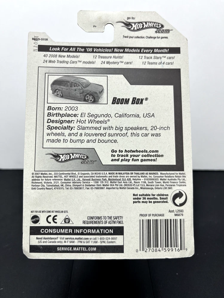 Hot Wheels Mainline 2008 Team Hot Trucks Boom Box is a must-have for any diecast and toy vehicle collector. The car is part of the Hot Wheels Team Hot Trucks series and is a 1:64 scale model. Perfect for collectors or anyone who loves cars and wants to have a unique and rare addition to their collection. The car has been stored in a smoke-free and pet-free environment, and it is in good condition. The car comes with the original packaging and instructions, making it easy to display and keep safe. Overall, this Hot Wheels Mainline 2008 Team Hot Trucks Boom Box is a great investment and a perfect addition to any collection. Cards and blisters are not perfect and may have creases, soft corners, stickers, and or cracks, see photos. Additional photos can be provided on request. All items are shipped and sold from the USA. Will ship in a corrugated box with bubble wrap ***NO BUBBLE MAILERS***