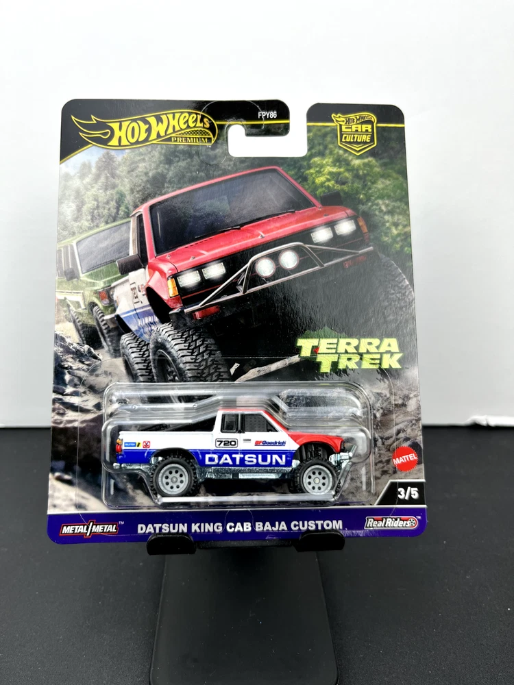Hot Wheels Premium 2024 Car Culture Terra Trek Datsun King Cab Baja Custom is a must-have for any diecast and toy vehicle collector. The car is part of the Hot Wheels Car Culture Terra Trek series and is a 1:64 scale model. Perfect for collectors or anyone who loves cars and wants to have a unique and rare addition to their collection. The car has been stored in a smoke-free and pet-free environment, and it is in excellent condition. The car comes with the original packaging and instructions, making it easy to display and keep safe. Overall, this Hot Wheels Premium 2024 Car Culture Terra Trek Datsun King Cab Baja Custom is a great investment and a perfect addition to any collection. All items are shipped and sold from the USA. Will ship in a corrugated box with bubble wrap ***NO BUBBLE MAILERS***
