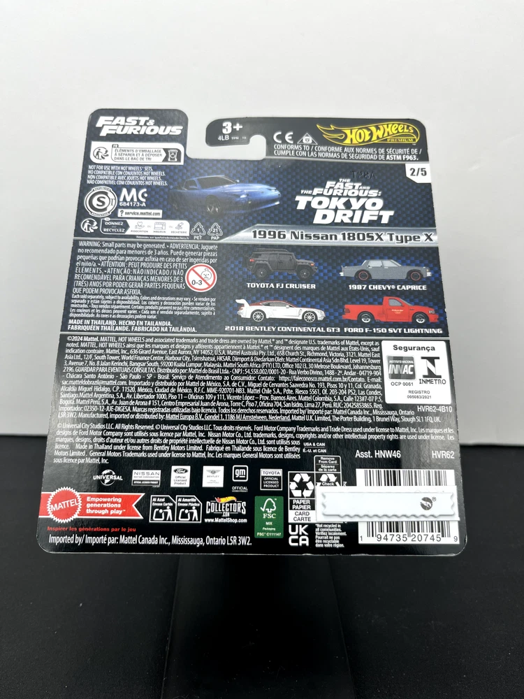 Hot Wheels Premium Fast & Furious Tokyo Drift 1996 Nissan 180SX Type X is a must-have for any diecast and toy vehicle collector. The car is part of the Hot Wheels Fast & Furious series and is a 1:64 scale model. Perfect for collectors or anyone who loves cars and wants to have a unique and rare addition to their collection. The car has been stored in a smoke-free and pet-free environment, and it is in excellent condition. The car comes with the original packaging and instructions, making it easy to display and keep safe. Overall, this Hot Wheels Premium Fast & Furious Tokyo Drift 1996 Nissan 180SX Type X is a great investment and a perfect addition to any collection. All items are shipped and sold from the USA. Will ship in a corrugated box with bubble wrap ***NO BUBBLE MAILERS***