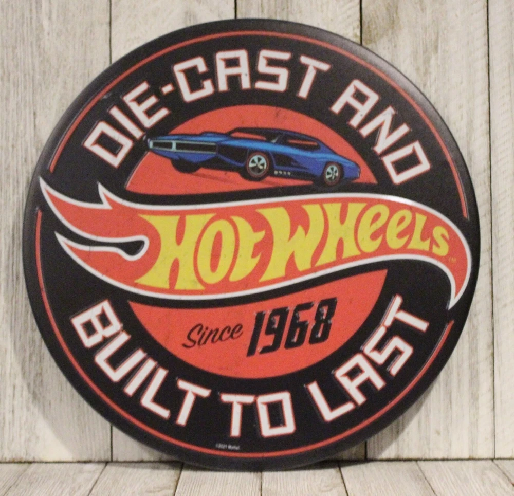 Hot Wheels Round Tin Metal Sign Toy Cars Boys Room Wall Art Man Cave Decor XZ
