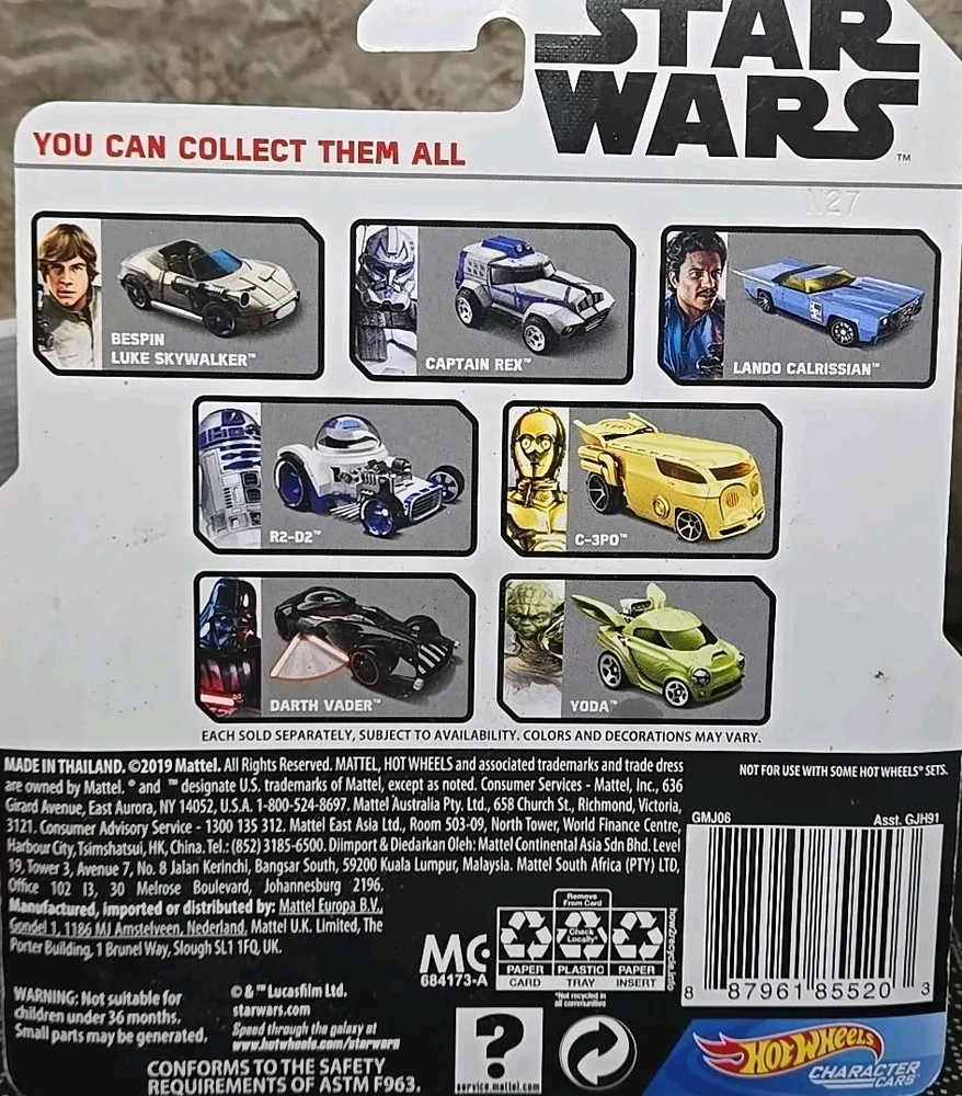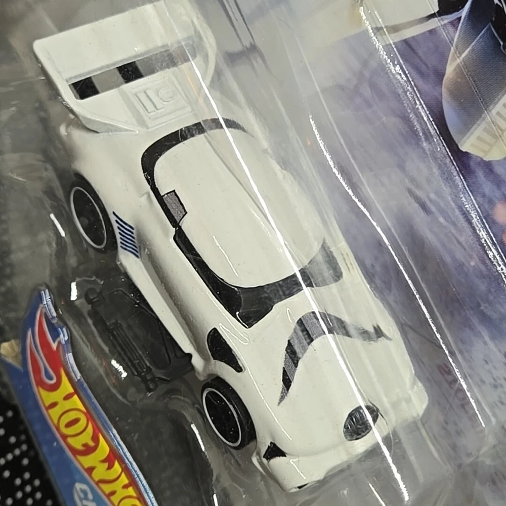 The Hot Wheels Stormtrooper Vehicle is a die-cast toy car featuring a design inspired by the Empire Strikes Back theme from Star Wars. The vehicle is white in color and is part of the Hot Wheels brand's collection, specifically appealing to fans of the iconic Star Wars franchise. With a recommended age range of 3 years and older, this collectible toy is sure to delight both young fans and adult collectors with its unique Stormtrooper design and attention to detail. I have a total of 6 different Star Wars character vehicles. They may not be from the same movie tho. 1) THE MANDALORIAN 2)BO KATAN (2 AVAIL.) 3)CARA DUNE 4)LUKE SKYWALKER 5)BOBA FETT