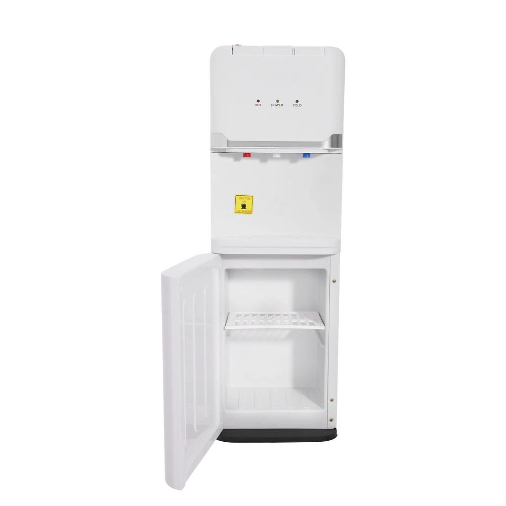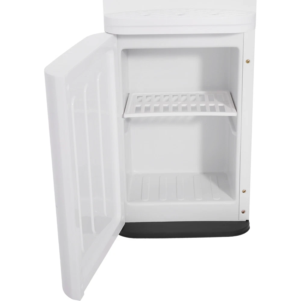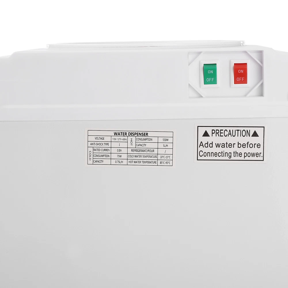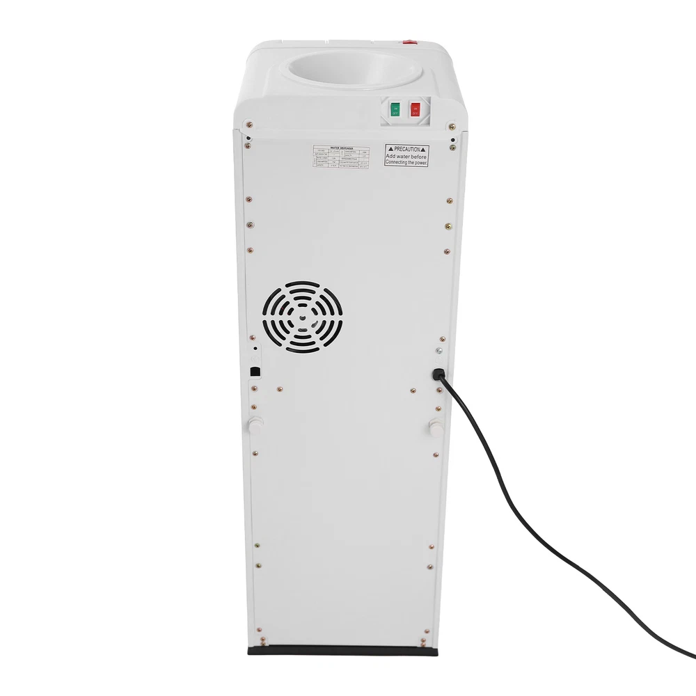 Hot&Cold&Warm Water Cooler Top Loading Water Dispenser – White, Holds 5 Gallon Description In the busy pace of life, every drop of pure water is a gentle care for your body. Our top-loading water dispenser is easy to use, whether it's hot water, cold water, or warm water, it meets your all-day drinking needs and enjoys a temperature that's just right for you. Its simple yet elegant design blends well with your home environment. Multiple safety protection mechanisms ensure the safety of you and your family. Key Features Sturdy and Durable: The product is made of high-quality PP, using injection molding technology, with high strength, heat resistance, wear resistance, excellent insulation properties, and long service life. High Efficiency: The cooling power of 75W, heating power of 550W, and high-quality stainless steel heating liner enable this product to achieve a cooling capacity of 0.2 Gal/ H and a heating capacity of 1.32 Gal/ H, which can provide water at the desired temperature in a short period of time and improve the convenience of drinking water. Large Capacity: It is suitable for buckets (not included) with a capacity of 5 Gal and below, enabling a continuous supply of large quantities of drinking water and saying goodbye to the embarrassment of queuing for water. Three Water Temperatures: It can supply cold water at 50-59 ℉, hot water at 185-203 ℉, and warm water at ambient temperature to meet different seasons and drinking needs, such as making tea, brewing coffee, or enjoying cold drinks. High Safety: The red child safety lock on the hot water button prevents the possibility of accidental scalding of children. In case of water shortage, the heating and cooling lights of the machine will flash simultaneously and the pumping sound will become louder to remind you to change the bucket. The anti-dry burn feature ensures safe use by automatically disconnecting the main circuit board when the machine runs out of water, and the Class I shockproof rating allows you to use the product with confidence. Energy-saving: The cold water power switch and hot water power switch on the back of the machine allow you to control when each temperature is turned on or off, helping to save energy when one or both temperatures are not in use. Even with the full-off button, the machine still provides warm water for your convenience. User-friendly Design: The top outlet structure of hot water excludes the possibility of stratification of hot and cold water, providing you with purer and healthier drinking water. Easy to Use: Convenient buttons, separate spout, clear LED indicators, and one-touch on/off switches allow you to use this machine with ease, even for the elderly. Easy to Clean: Removable drip tray and top sink base, simple construction, and smooth surface allow you to easily remove dust from the surface of the machine with a towel. Customer Service: We stand behind all our guests and look forward to assisting you with your purchase. It is our pleasure to answer your confusion and questions. The end of the story between us is definitely not "we sell and you buy" Details Top-loading Water Mechanism: It makes it easy for you to keep track of changes in water capacity and also helps to keep dust out. Two-tier Locker: It is convenient for storing small items such as mugs, coffee ingredients, etc. The center shelf can be removed and moved for storing items of different heights. Heat Dissipation Holes: They help to dissipate the heat from the machine, thus prolonging its life. Application It can be used for both home and business, suitable for a living room, bedroom, cafe, milk tea shop, restaurant, office, company, meeting room, receiving room, school, hospital, garage, basement, apartment, dormitory, and so on. Specifications Style: Modern Shape: Rectangular Color: White Material: PP Surface Treatment: Injection Molding Plug Standard: US Standard Mount Type: Floor Mount Assembly Required: No Indoor/Outdoor Usage: Indoor Anti-shock Type: I Type: Top-loading Warm Water Temperature: Depends on the Ambient Temperature Water Discharge Mode: Hot, Cold, Warm Power Source: Corded Voltage: 110-127V, 60HZ Power Cord Length: 1.5m/ 4.92 ft Cold Water Temperature: 10-15℃/ 50-59 ℉ Cold Rated Current: 0.8A Cold Water Power: 75W Cold Capacity: 0.75L/0.2 Gal/ H Hot Water Temperature: 85-95℃/ 185-203 ℉ Hot Water Power: 550W Hot Capacity: 5L/1.32 Gal/ H Applicable Bucket Capacity: ≤18.9L/ 5 Gal Gross Weight: 8.5kg/ 18.74 lbs Net Weight: 7kg/ 15.43 lbs Product Size: 27.5*28*83cm/ 10.83*11.02*32.68 in Package Size: 87*31.5*31.5cm/ 34.25*12.40*12.40 in Package Included 1* Top Loading Water Dispenser Notes Please note that this product does not include a bucket. Please note that dry burning is prohibited! Please allow the slight color difference caused by the shooting light and 1-3cm error due to manual measurement, and make sure you do not mind before you order. Payment Delivery details Terms of sales About us Contact us Payment We accept ebay payment 。 Fees such as import duties, taxes are not included in the item price or shipping costs. These charges are the buyer's responsibility. Delivery details Shipping: 2-9 working days to: USA Terms of sales We maintain high standards of excellence and strive for hundred percent customer satisfaction. Feedback is very important to us. We hope that you contact us immediately before you give neutral or negative feedback, so that we can address your concerns. It is impossible to address issues if we do not know about them! About us Your satis faction is our ultimate goal. We work hard to earn your trust and future business. Our certified technicians have tested each item before shipping. The unit comes with 1 year limited warranty on all manufacturing defects. a) If you receive a defective item, you may return it or ask for a discount. Please contact us within 14 days after you receive the package. b) What you returned must be intact and in its original packaging