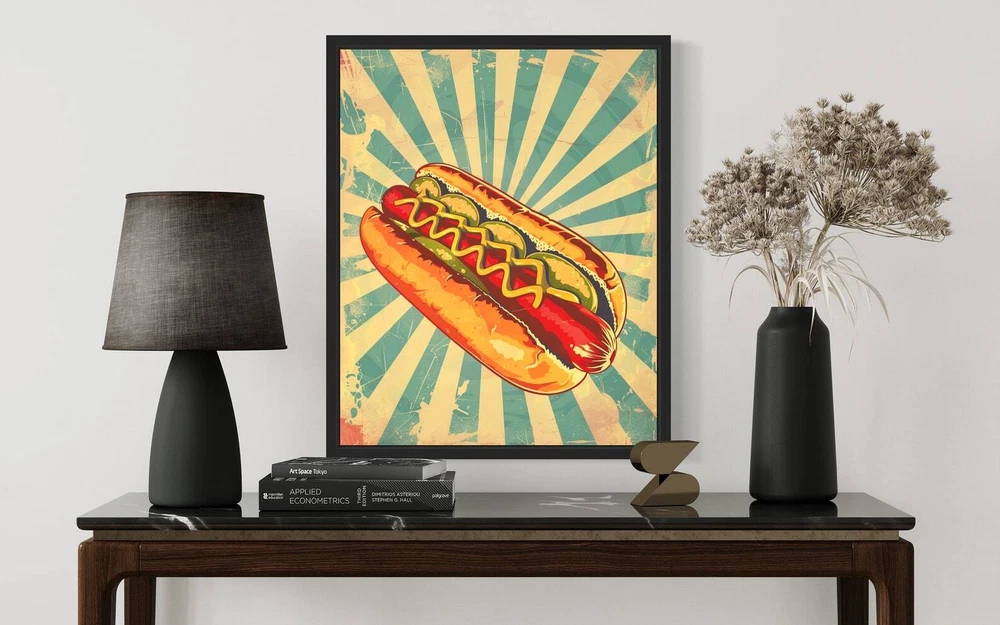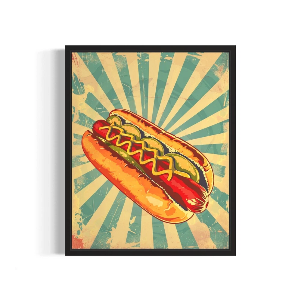 Hotdog Pop Art Poster Art Print Vintage Retro Painting Wall Art Decor Material: Premium luster photo paper Print type: Inkjet printing One side printed + The finish provides the highest possible resolution and color saturation + Lasts up to 200 years in color and 400 years in black-and-white + Printed on high-quality resin-coated photo base paper medium + Posters can be hung with double-sided tape, tacks, or framed + Hand washing with a gentle cry cloth is recommended for extended durability I will hand select the best choice of paper for your chosen design to ensure top quality results for a beautiful, bright and luxurious print. All prints are sealed in cellophane slips for protection during transportation, and are shipped in a protective cardboard envelope.