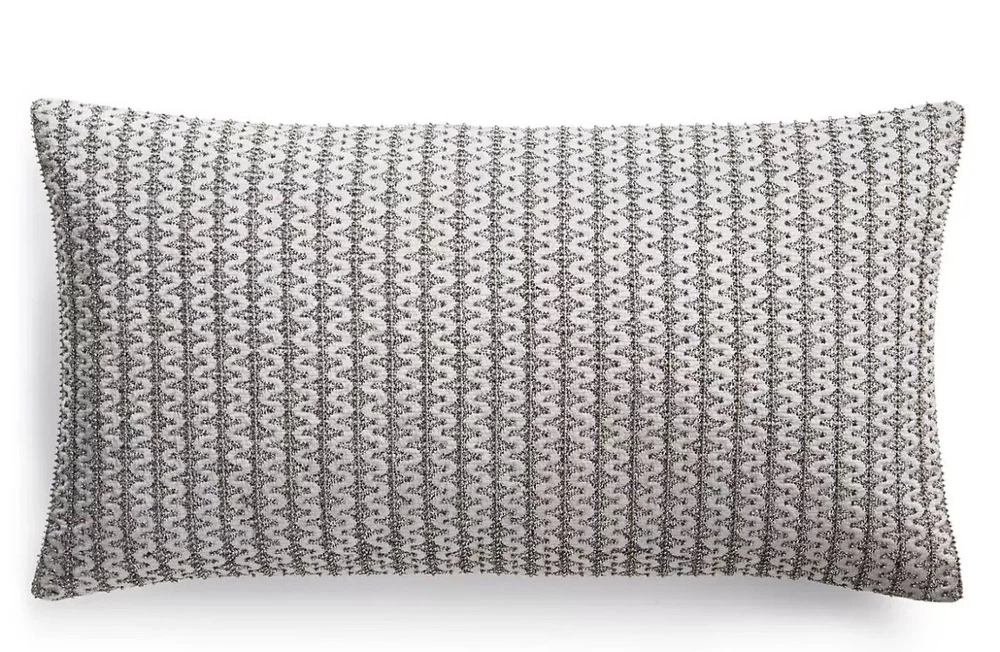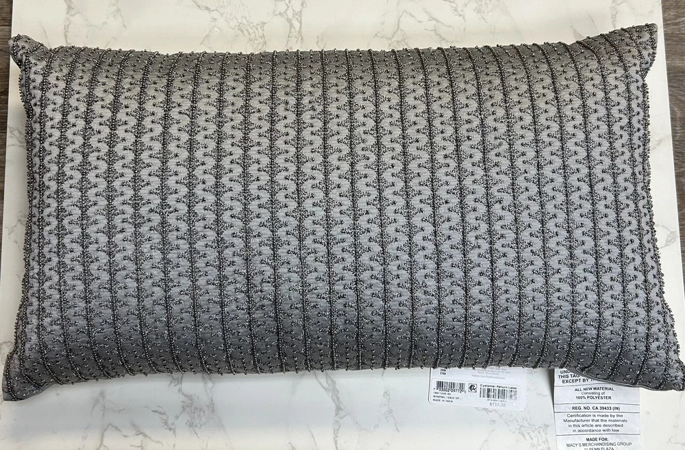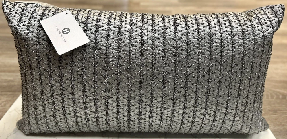 Add a touch of modern elegance to your living space with this Hotel Collection decorative pillow. Measuring 12 x 22 inches, this gray pillow is made of 100% polyester and features a stylish rectangular shape. The pillow is perfect for indoor use and is spot clean only. Ideal for the living room, lounge or dining room, this fashion-themed pillow adds a touch of sophistication to any modern style decor. The Hotel Collection brand is known for its quality and this pillow is no exception. Care instructions include spot clean only.