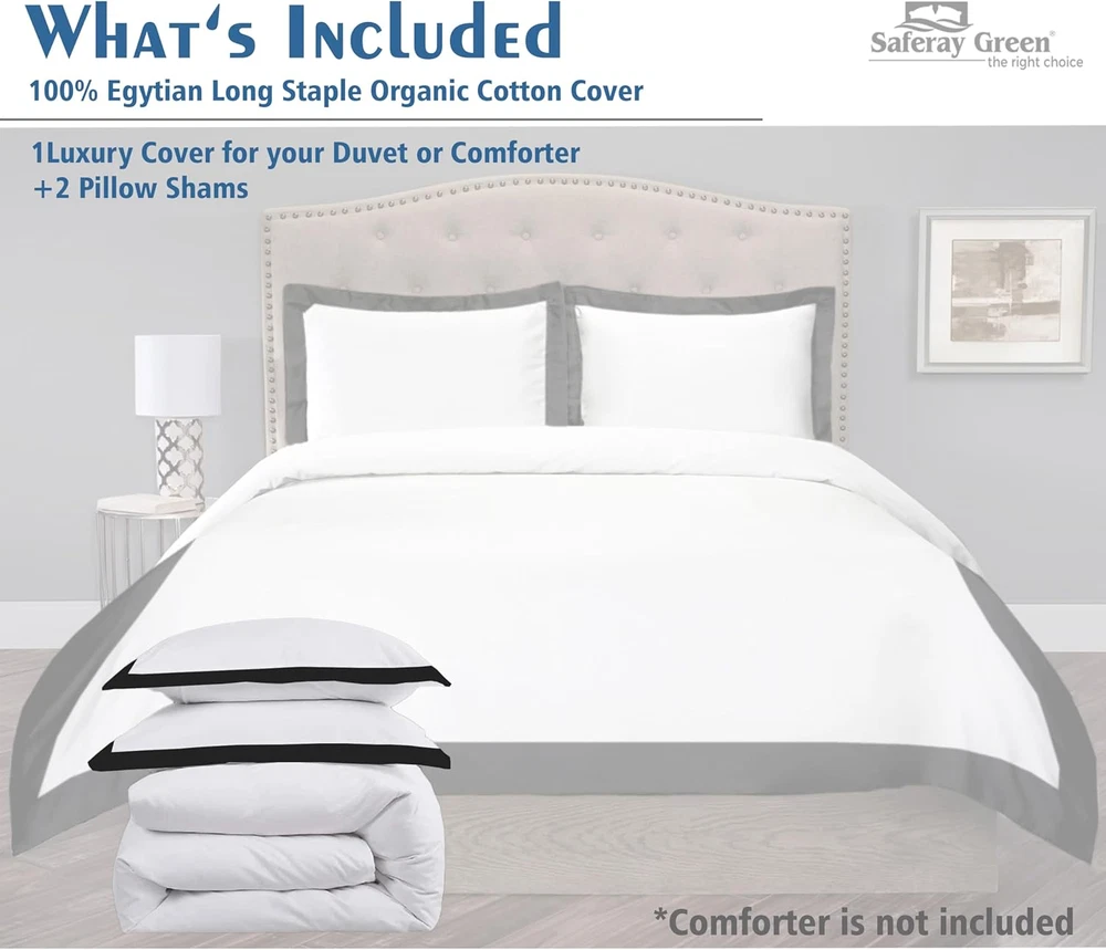 Store New Arrivals Add to Favorite View Feedback Contact Hotel Luxury 3Pc Dual Tone Duvet Cover Set-850 Thread Count 100% Organic Cotton Premium Bedding Collection Oversized King Size 120 X 98 Inches Machine Washable (White & Black) Description Style Modern Pattern Solid Theme modern Cartoon Character Solid Number of Pieces 3 Pillowcase Quantity 2 Product Dimensions 120 x 98 x 2 inches Material Cotton Age Range (Description) All Age Seasons All Closure Type Zipper Item dimensions L x W x H 120 x 98 x 2 inches Item Weight 4.8 pounds Sham Quantity 2 Special Feature Hypoallergenic, Wrinkle Resistant Color White & Black Thread Count 850 Included Components Pillow Sham, Pillowcase, Duvet Cover Product Care Instructions Machine Wash, do_not_bleach Size Oversized King Size (120" x 98") ✅DUVET COVER SET - Includes a duvet cover Oversized King measuring 120 by 98 inches with a zippered closure, 2 pillow cases (shams) measuring 20 by 40 inches with a 3 inches flange which adds classic decorative accent to the pillow shams (Comforter/insert not included). ✅MONEY SAVING SOLUTION: Our duvet covers act like a giant pillow case for your down comforter- making it the perfect solution to protect and increase the life of your comforter. No more expensive trips to the drycleaners our duvet covers are MACHINE WASHABLE and a seamless integration with your existing bedding! Large array of colors matching our Sheet sets, Pillowcases & Bed Skirts ✅THE LOOK: Imagine your bed looking like a luxurious hotel room with our duvet cover set queen size. Our Organic cotton fabric has a beautiful sheen and hardly any wrinkles giving a crisp and elegant look. We also have matching bed sheets in the same fabric and color too. ✅Luxuriously soft and lightweight: Saferay Green Organic Cotton duvet covers produce a comparable night sleep. Indulge in the unparalleled luxury of Saferay Green Duvet Cover Set, elevating your sleep experience to an extraordinary level of comfort and sophistication. ✅DURABLE & EASY CARE: Soft and smooth, this modern weighted blanket duvet cover is finished with high-strength stitching and are low-maintenance. Machine wash in cold water, tumble dry low, and iron when needed. If you prefer wrinkle-free bedding, use a short dry cycle and take your cover out promptly from the dryer or sun-dry. Please kindly note this duvet cover set does not include a comforter. Saferay greenUltimate blend of craftsmanship and elegance, our linens are designed to offer you a unique and sophisticated sleeping experience.Satisfy all your imagination of home 3pcs Duvet Cover Set (Without Comforter )Changing your bedding sets regularly,is a good chance to change the room style. The simple solid color design matches the duvet cover with various decoration style. Available in twenty colors, ten sizes for you. Demonstrating the charm of modern life. It's true--surround your family with soft feelings.Product DimensionsOversized King Size: 3 Pieces Duvet Cover SetInclude: 1 Duvet Cover, 2 Pillow Sham Duvet Cover Size: 120"X98" Pillow Sham Size: 20"X40" ABOUT US We offer the best prices around on high quality products. Our E-store includes media such as books, movies, music and games while offering electronics, toys, sporting apparel, clothing, tools, general home, garden items and more. SHIPPING We are always working hard to ensure your package arrives as soon as possible. Please understand that some factors like weather, high postal traffic, and the performance of shipping companies are outside of our control. We offer free shipping to the lower 48 states and ship within 2 business days of payment, usually sooner. We do not accept P.O. Boxes. Please provide a physical address. For shipping outside of the continental USA, we only use eBay's Global Shipping Program.The item is shipped to KY and then sent to the rest of the world. International customers are responsible for all duties and taxes. Continue to check out in order to calculate costs for shipping the item to your country. Messages regarding eBay's Global Shipping Program MUST be directed at eBay EXCLUSIVELY. RETURNS We offer a 30-Day Return Policy on items which you are not completely satisfied with. You have the option for a full-refund or an exchange of the item. No returns are available on items shipped outside of the USA. PAYMENT We accept PayPal. CONTACT US This page content is yet to come Please ad us to your favorite seller and visit again later Thank You CUSTOMER SATISFACTION We try our very best to make sure every customer is completely satisfied. If there's a problem, message us! We're happy to help. WE ACCEPT Copyright © 2021 AutoDS. | All Rights Reserved