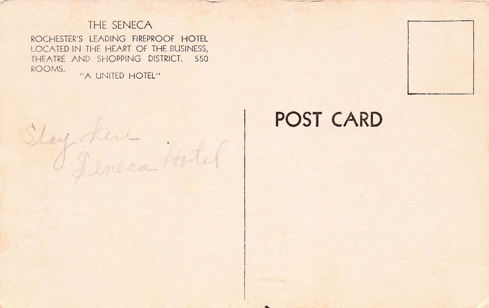 Hotel Seneca, Rochester NY New York Downtown Artist Drawing Vtg Postcard E46