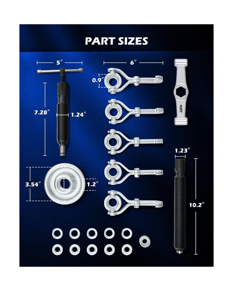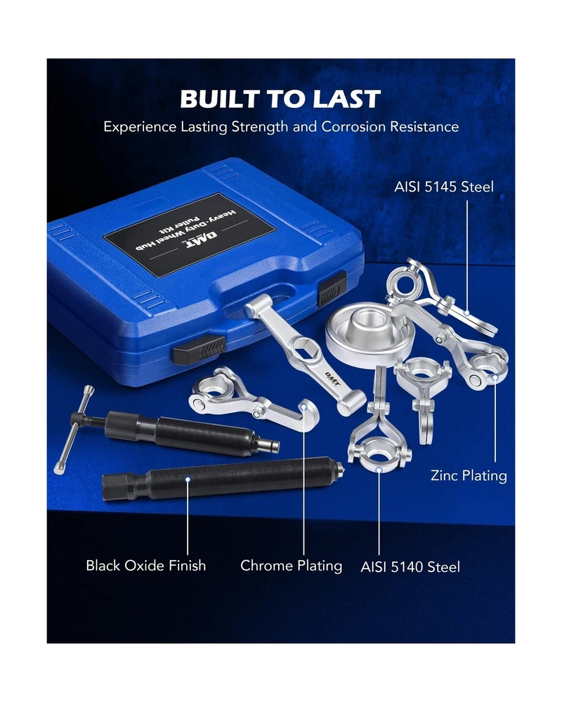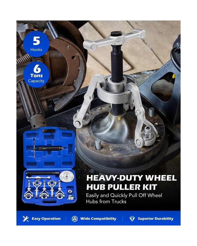 Orion Motor Tech Heavy Duty Hub Puller Kit, Wheel Hub Removal Tool with Adjustable Hooks, Large Brake Drum Puller with Hydraulic Ram, Mechanical Hub Puller Tool Set for Cars Trucks Large Vehicles Description Features: 20PCS Hub Puller Kit: Orion Motor Tech's wheel puller tool kit includes 5 adjustable legs, a hydraulic ram, and 14 other essential pieces to help you quickly and easily remove wheel hubs on trucks. Ideal for quick roadside fixes or busy repair shops Damage-Free Operation: With a rotating aperture on each puller leg, this brake drum puller tool locks in place for a secure grip, removing wheel hubs smoothly without scratching studs or harming nearby components Wide Compatibility: The adjustable puller legs can be positioned anywhere on the hub adapter plate and fit wheel hubs with up to 5 studs. That allows this hub puller set to work seamlessly on various passenger and commercial vehicles 6-Ton Capacity: This wheel hub puller kit features a hydraulic ram that delivers a crushing 6 tons of force, making light work of even the most stubborn, stuck-on hubs. Avoid exceeding the ram's capacity to prevent potential leakage Heavy-Duty Construction: Crafted from heat-treated 40Cr and 45Cr steel with corrosion-resistant finishes, this wheel hub puller tool is tough enough for daily use in a busy workshop or heavy-duty repairs at homeready for any job, big or small Product Details: Manufacturer: Orion Motor Tech Brand: Orion Motor Tech Model: Hub Puller Item Weight: 18.46 pounds Package Dimensions: 16.38 x 13.66 x 5 inches Item model number: PUL-W010-00 Manufacturer Part Number: MPN1PULW010-00 Date First Available: June 25, 2024 Delivery We Do Not Ship Outside of the Continental US. Return Policy All items qualify for returns within 30 days of receipt. Buyer is responsible for return shipping on any item that is not damaged. Feedback We take our reputation seriously, we buy and sell online, so we understand the value of trust. If you are unsatisfied with your order, please contact us and we will work with you to resolve it to your satisfaction.