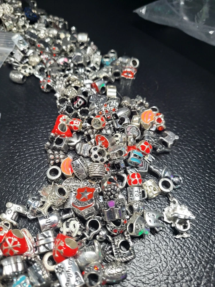 Sterling silver plated huge lot over 6 # super ornate beads for necklaces or bracelets earrings you name it This product is a huge lot of jewelry making supplies, including over 6 pounds of cabochons, beads, charms, and sterling silver components. The multicolor cabochons add a variety of colors to the jewelry creations. Perfect for crafters and jewelry makers looking to add unique and colorful elements to their projects.