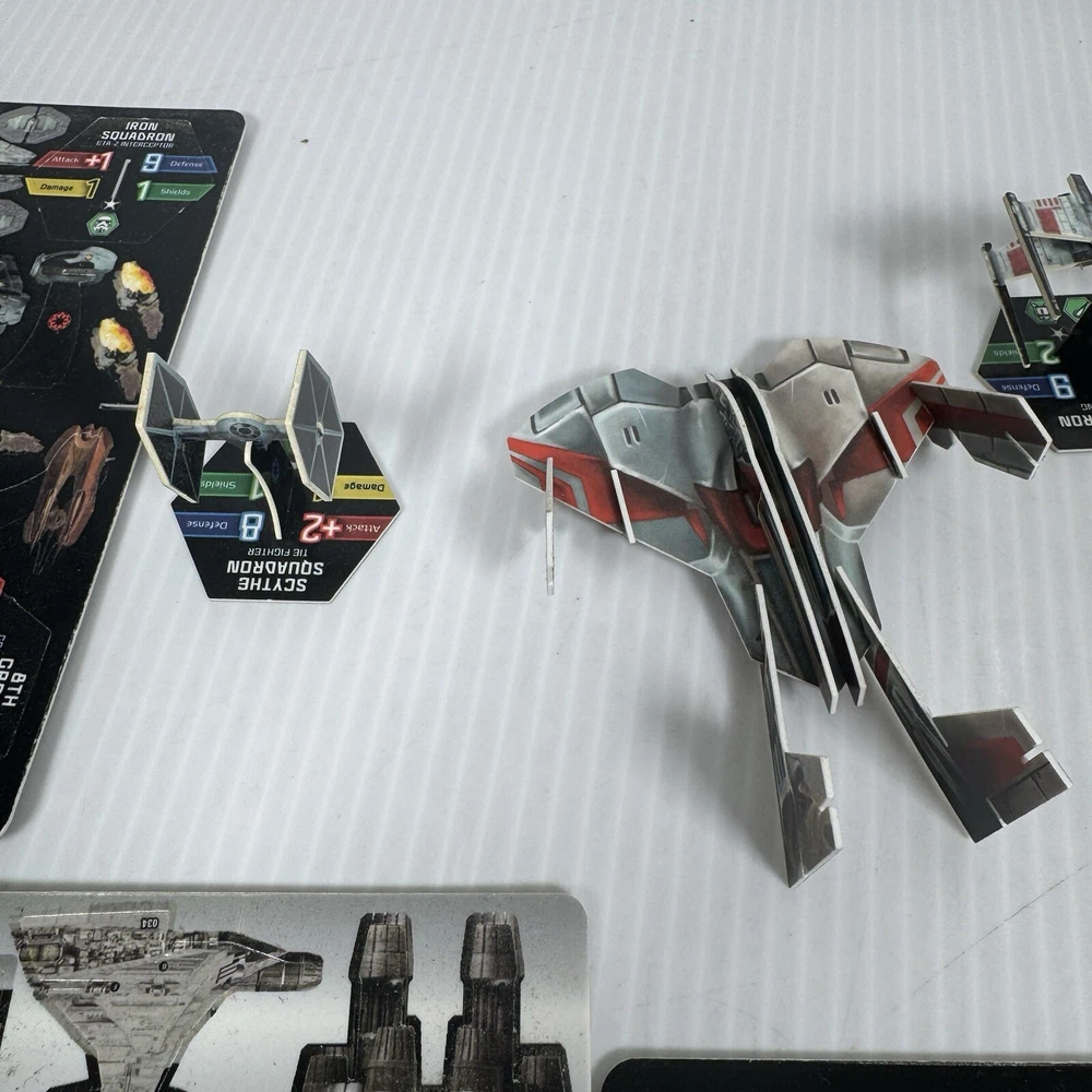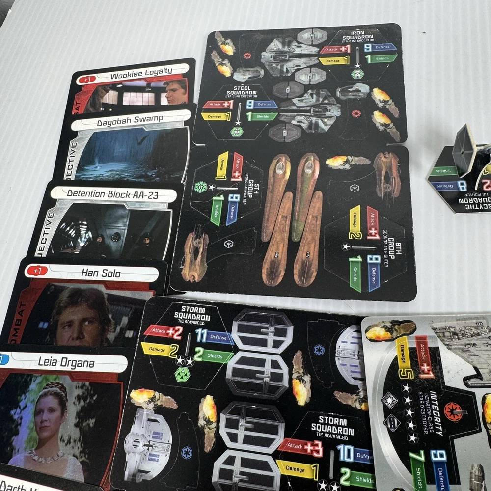 This is a mixed lot of several Star Wars Pocketmodel miniatures with some new on card, some assembled., and some TCG cards. See photos for details. Includes the Integrity and Razor ships.