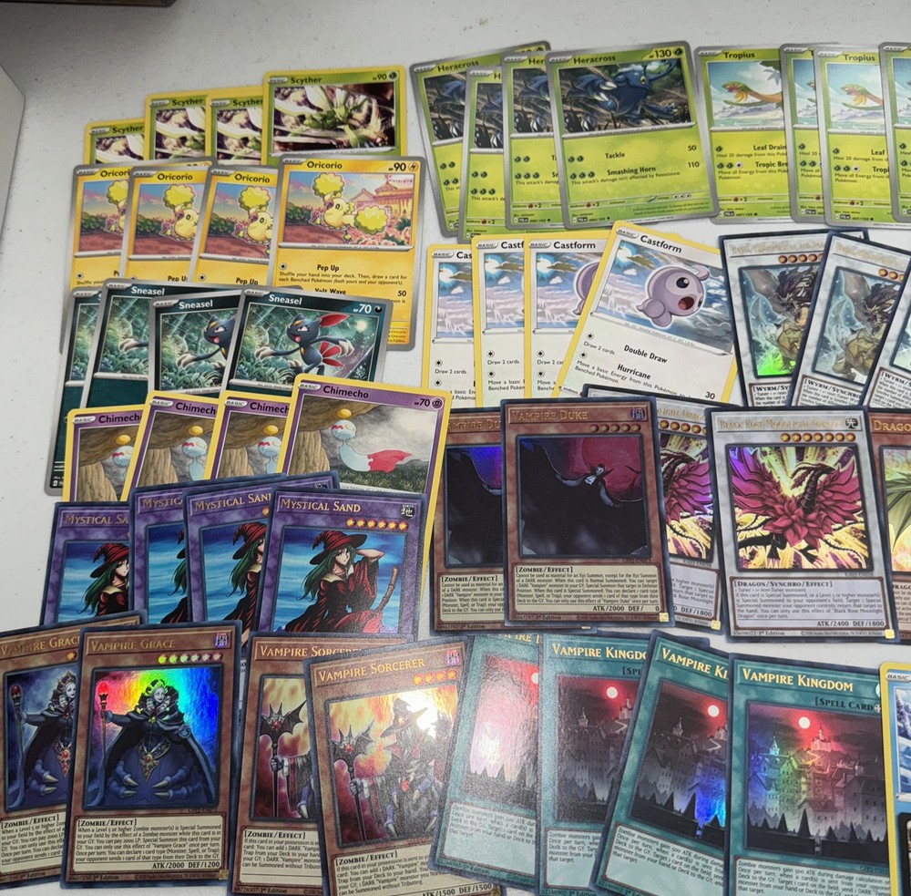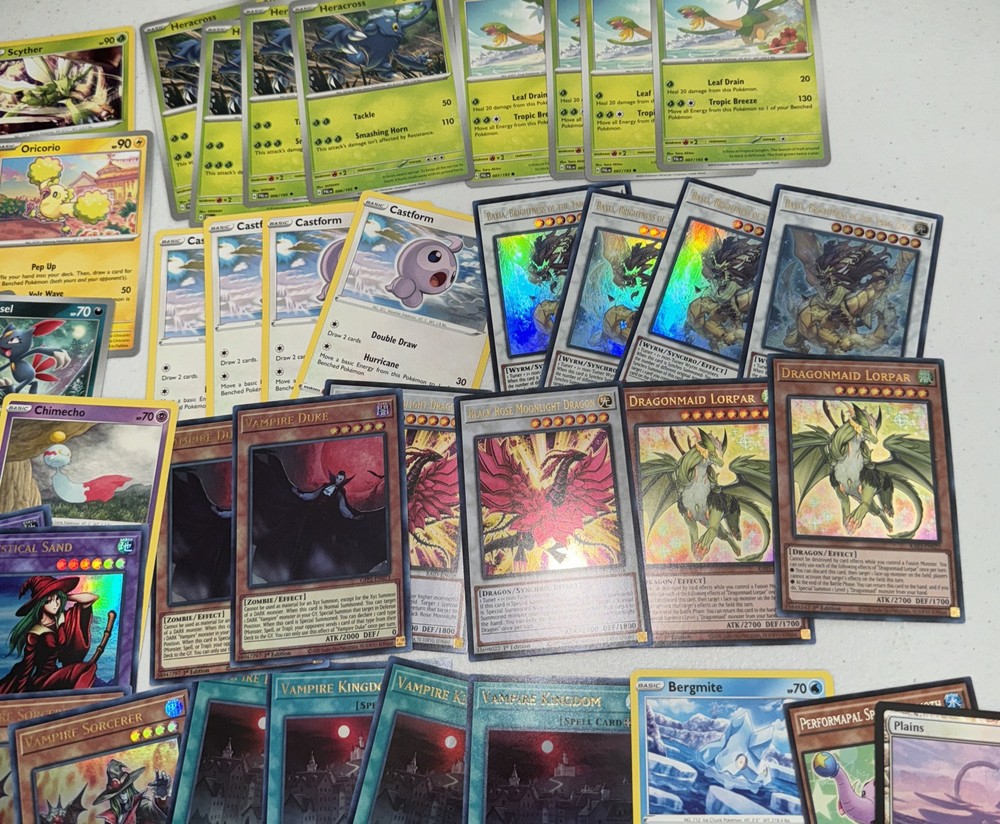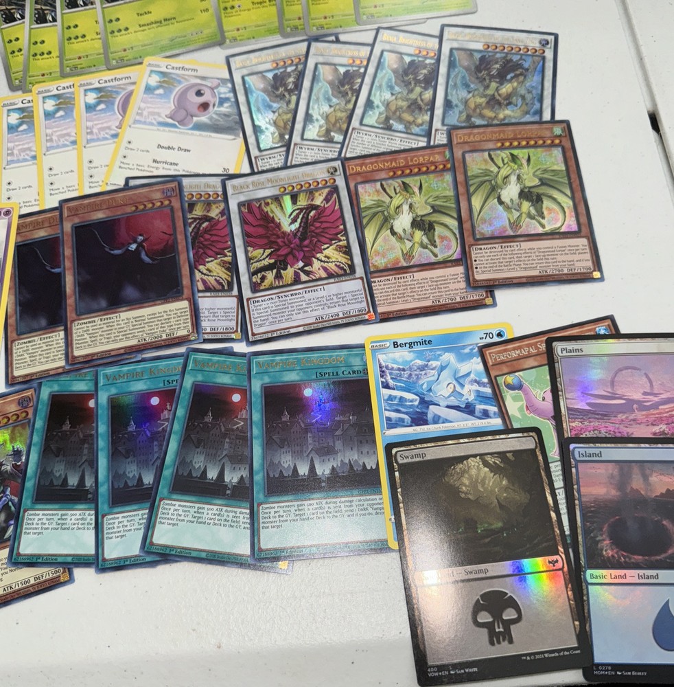 Just got this lot and loving it! Tons of awesome holos and cool cards from Pokémon, Yu-Gi-Oh, and MTG—mostly dragons, vamps, and other wicked types. Near-mint condition, great value for the price. Perfect for collectors or players looking to bulk up their decks. Super happy with this grab!