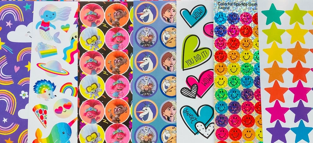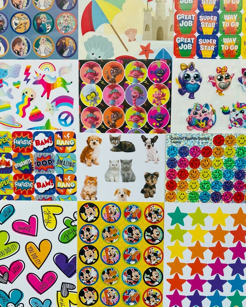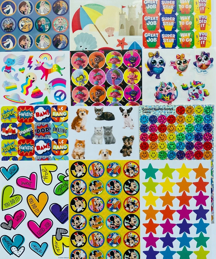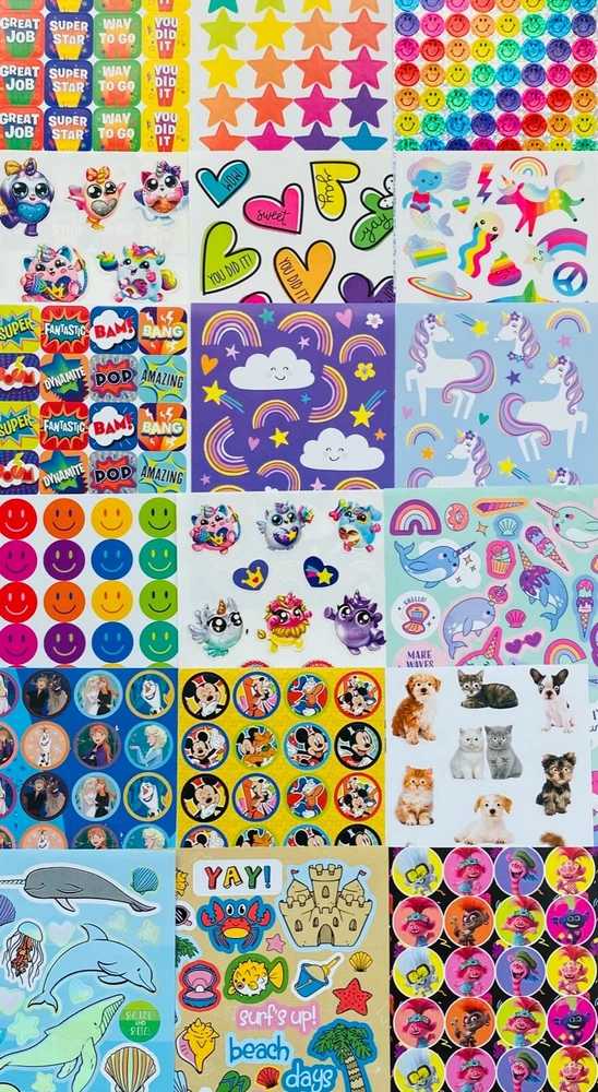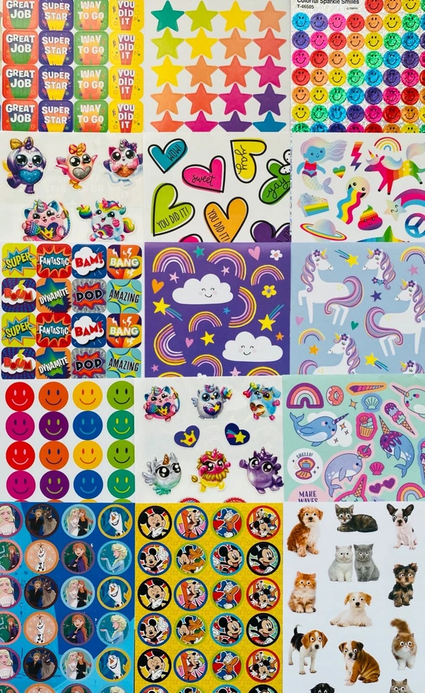 All stickers are BRAND NEW | Still in their original packaging! Mixed Sticker Lot | The Ultimate Kit | Qty. 500+ Stickers | High Quality Only! Fun Assortment of Puffy, Scrapbook, Cartoons, Bubble, Pop Up Stickers Packs For Everyone! You will receive 27+ Sticker Sheets of beautiful colorful assortment. I have included a large variety of pictures of the assortment available. The pictures give you an idea of what you will be receiving. Please Note: You will not receive everything pictured. Please contact me with any special requests. This HUGE Variety of fun designs stickers can be used in parties, classroom, school and home, good for reward for students, potty training, adding inside a birthday card, game activities, entertaining toddlers, etc. Perfect Gifts for Kids & all Occasions: Can be given as a gift for kids, girls, boys, toddlers, teens, students, friends, and classmates, they will love it! Each package of stickers is a different style & theme with some lovely embellishments like rhinestones, ribbons, buttons and other 3D details that make these quality stickers look so unique!