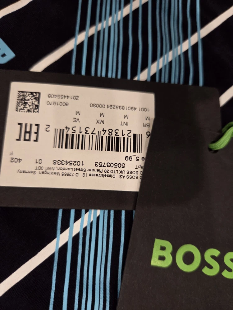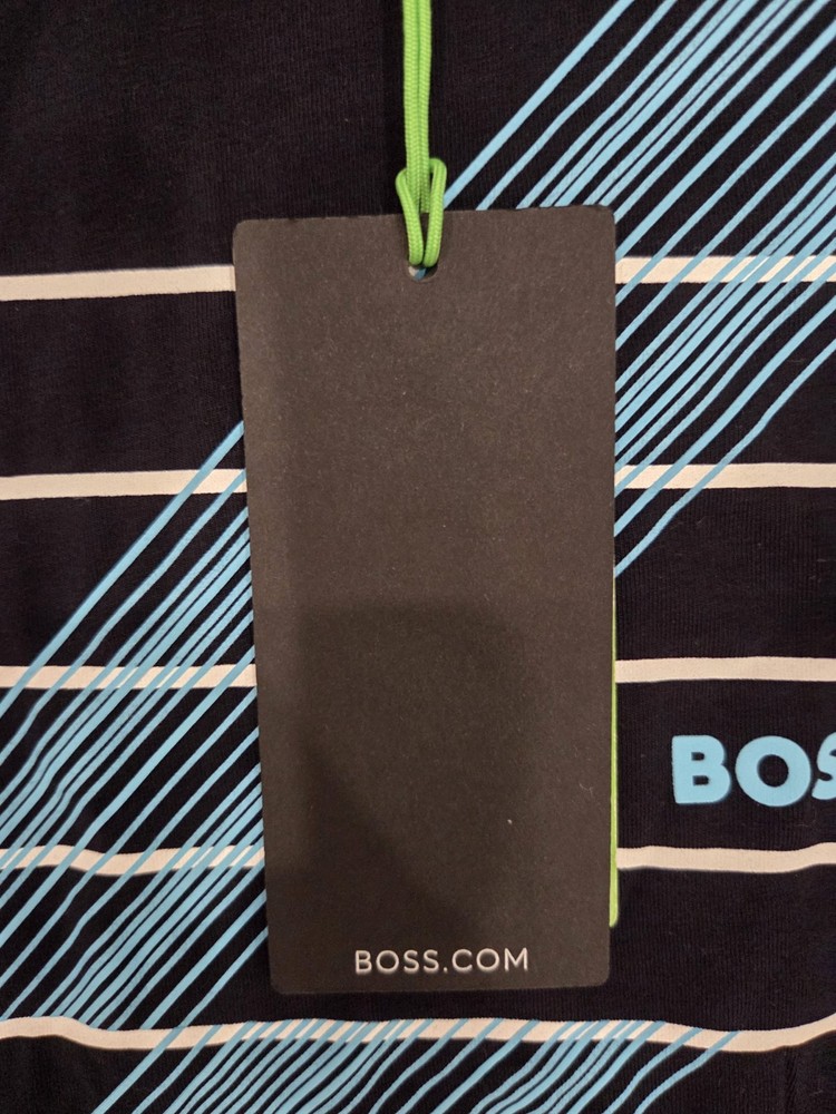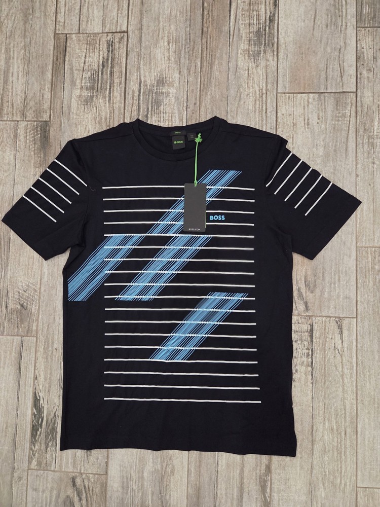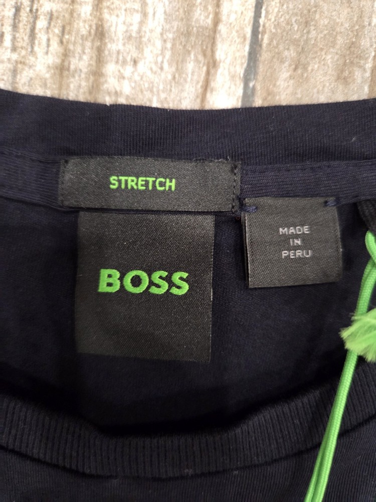 The Hugo Boss Athleisure Tee 5_99 in size Medium is a stylish and comfortable T-shirt designed for men. Made with a stretch fabric, this regular fit shirt offers a relaxed yet fashionable look. The classic dark blue color, logo accent, and new with tags design make it a versatile and trendy addition to any man's wardrobe. Ideal for casual wear, this Hugo Boss tee is a must-have for those seeking both style and comfort in their clothing choices.