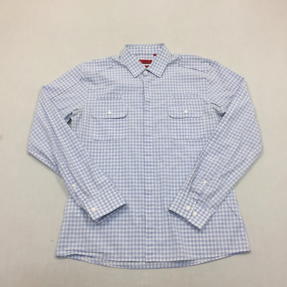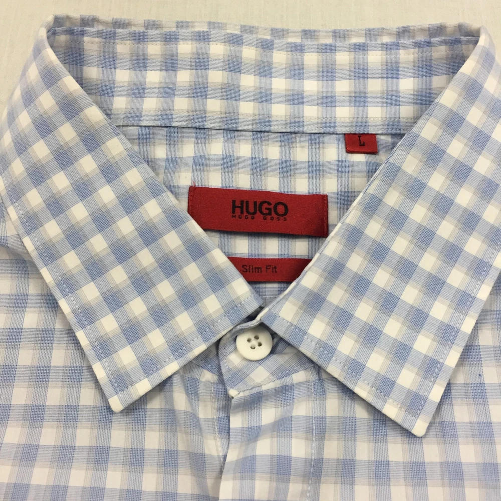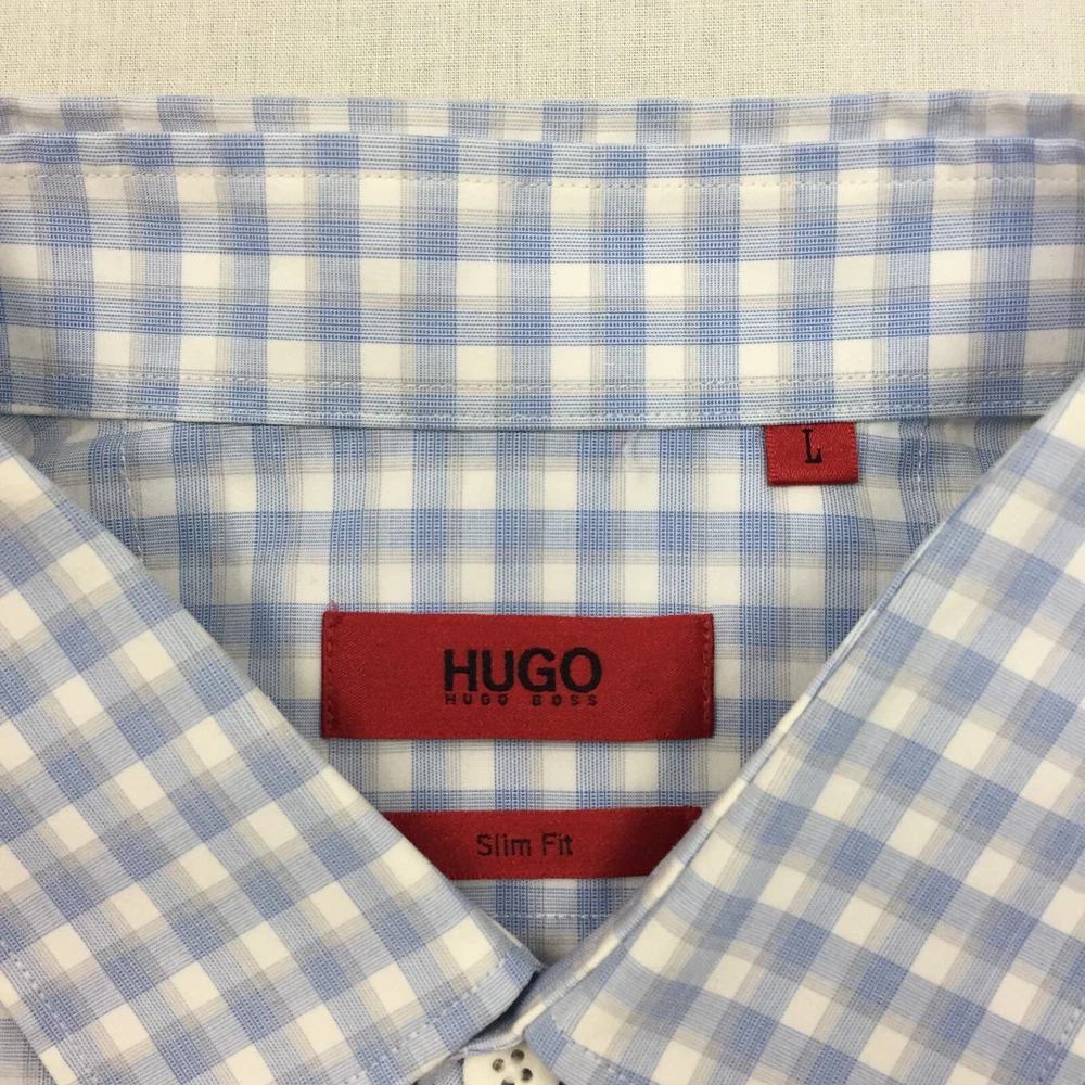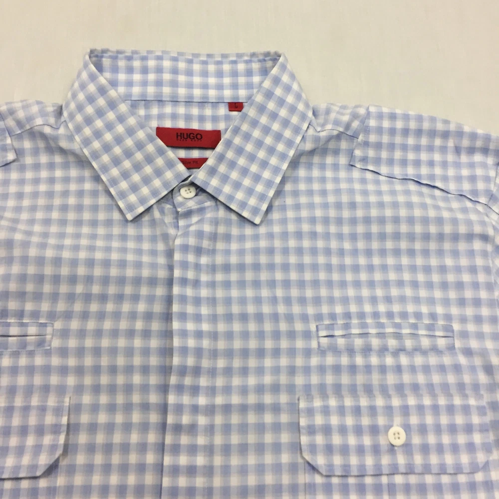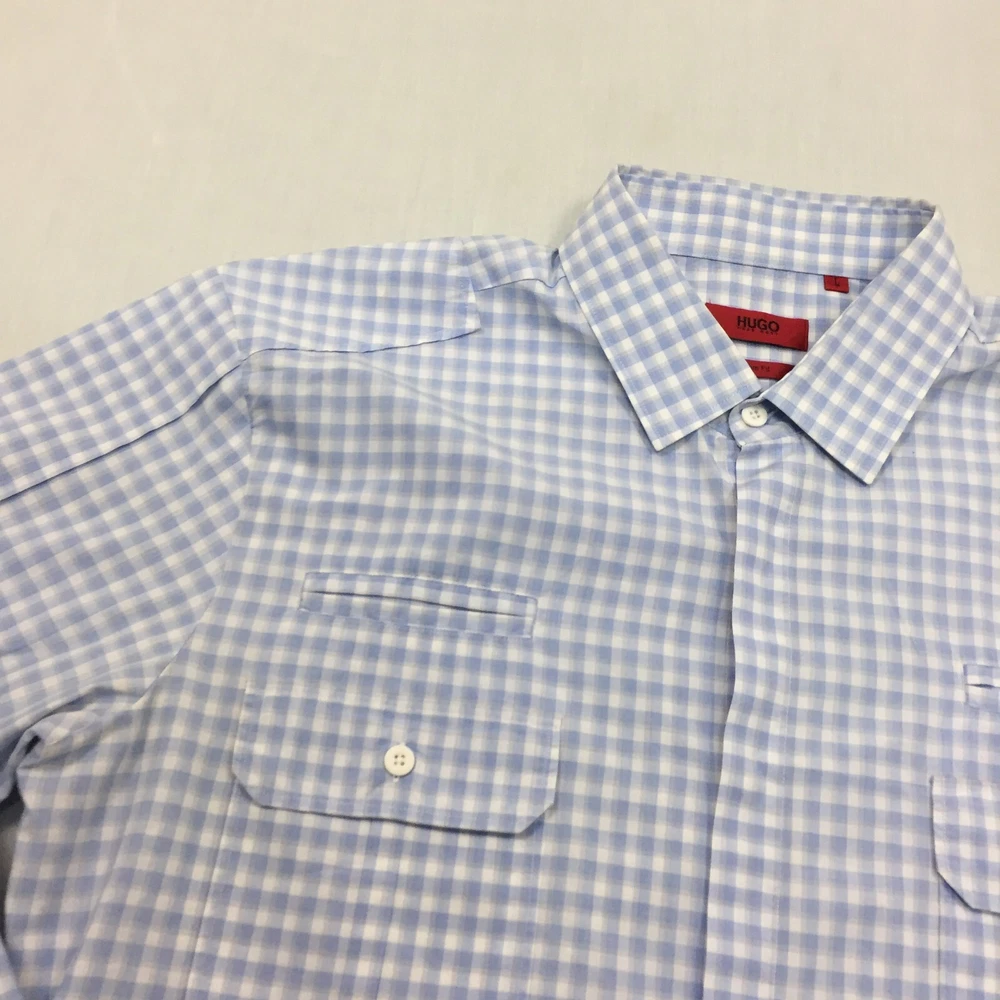 Occasion: Business, Casual, Formal Handmade: No Department: Men Seller Notes: “Good used condition, check below for full description & photos.” Fit: Regular Sleeve Length: Long Sleeve Country/Region of Manufacture: Unknown Season: Autumn, Spring, Summer, Winter Colour: Blue Vintage: No Accents: Button Size Type: Regular Material: Cotton Blend Features: All Seasons Fabric Type: Canvas Type: Button-Up Collar Style: Button-Down Theme: Classic Closure: Button Size: L Neckline: Collared Garment Care: Machine Washable Pattern: Check Brand: HUGO BOSS Personalise: No
