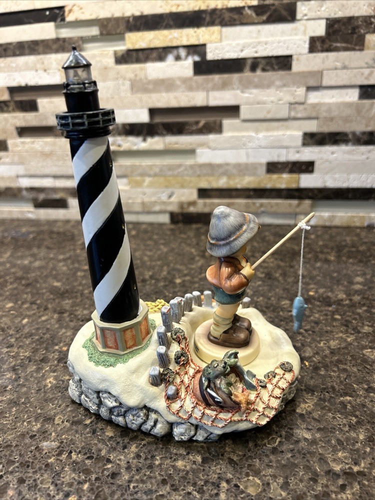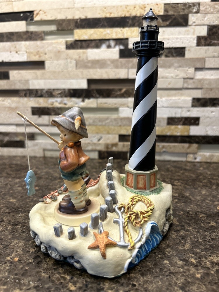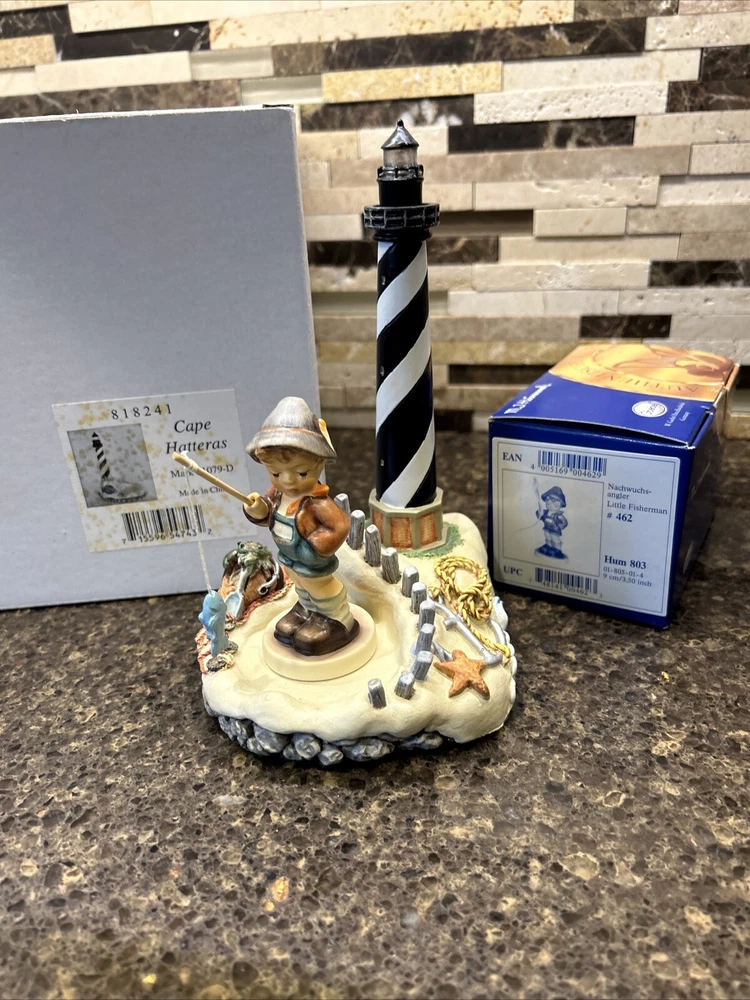 This M I Hummel figurine features the Little Fisherman #462 with a cape and working lighthouse. The intricately detailed piece is made of ceramic and porcelain, and it showcases a beautiful multicolor design. The figurine is part of the Hummel collection and was manufactured in Germany. The item comes in its original boxes for safekeeping. Lighthouse measures 7โ little fisherman measures 4โ Excellent condition. no chips cracks repairs or crazing Comes from smoke free environment and was cared for in curio cabinet. If you are unhappy with your purchase please contact me so we can resolve any issues you may have. Please leave feedback so we know the transaction is complete and that your satisfied with your purchase. Thank You!