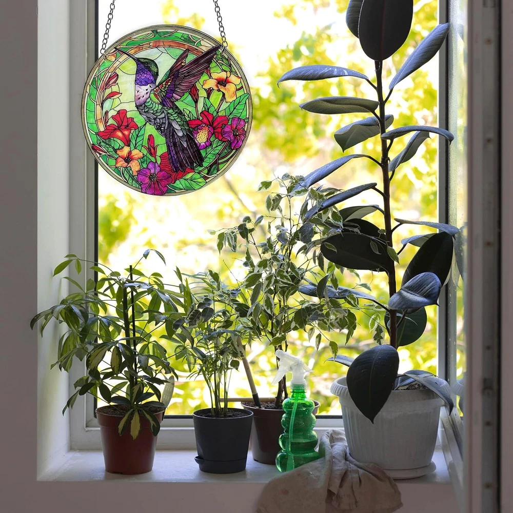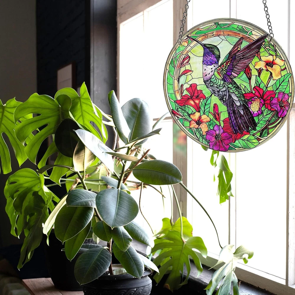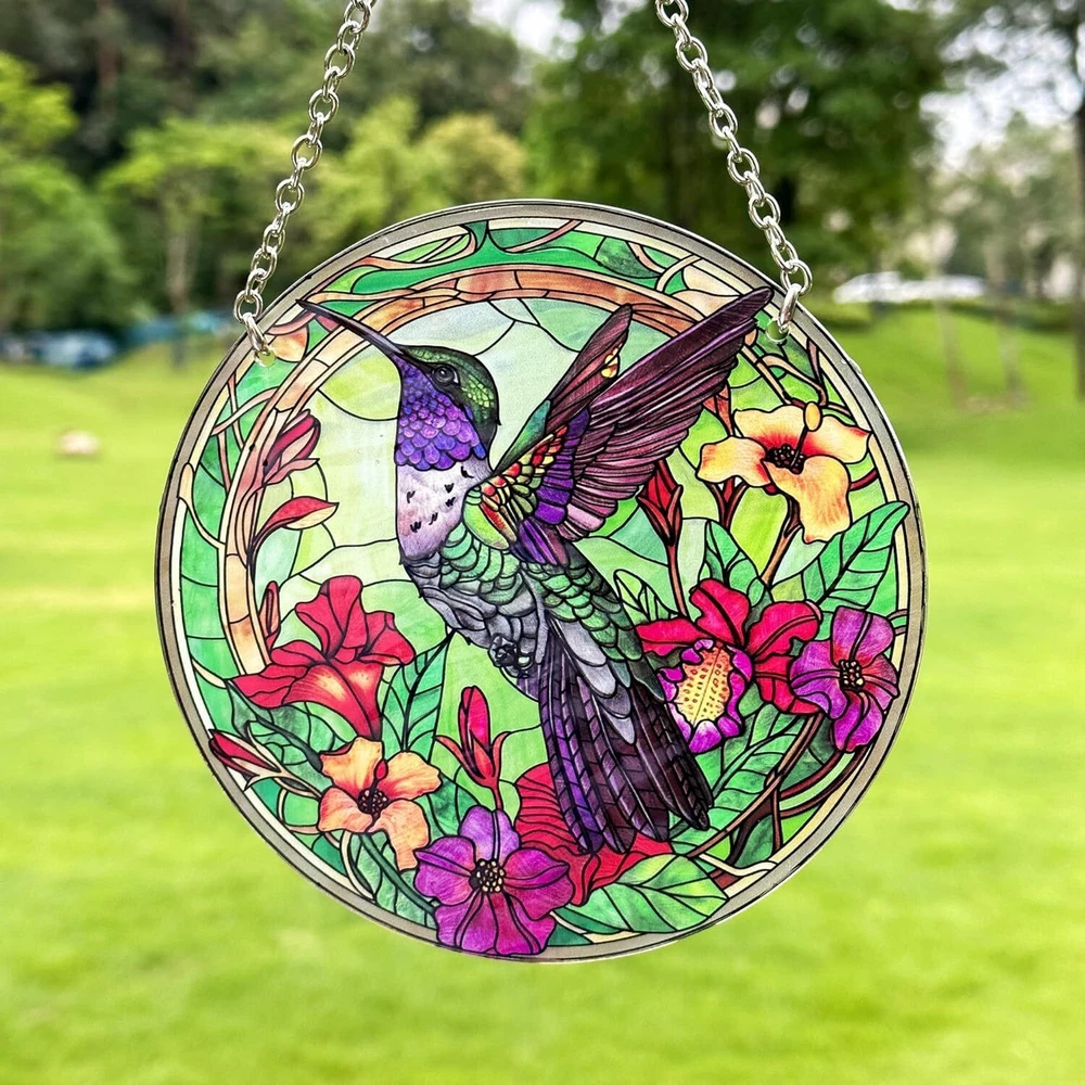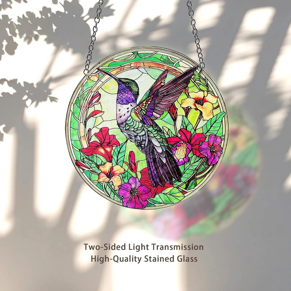 Hummingbird Stained Glass Decor for Women, Panel Purple and Green Product Details Product Dimensions: 6 x 6 x 0.1 inches Item Weight: 3.2 ounces Manufacturer: BXLZ Country of Origin: China Item model number: Sunca002 Hummingbird Stained Glass Decor Ornament: Stained Glass hummingbird Stained Glass Decor for Windows - Featuring designs that symbolize Happiness, Vitality,Inspiration and Creativity making these suncatchers meaningful gifts. Artisan Quality & Lifelike Charm- Crafted from genuine glass ( Not Acrylic or Plastic) with intricate details and vibrant colors, they add brilliance to any space, feel the textured surface and detailed images, bringing a touch of nature into your home. Easy Hanging & Packaging - Each 6 inch Stained Glass Decor includes an upgraded a suction cup and chain for effortless placement on windows, both indoors and out. Hummingbird Versatile Ornaments Decor - Enhance your space with the beauty of these purplish green hummingbird Stained Glass Decor for gardens, patios, balconies, window, hallway, entertainment venue and more. Hummingbird Gifts: The hummingbird birthday, new home, anniversary, christmas,thanksgiving gifts for bird lovers, family,women,man,friends,sister Post-sales care for our Suncatchers:Benefit from efficient query resolutions, hassle-free returns, and personalized support. We are committed to ensuring your satisfaction, providing a delightful shopping journey from purchase to post-purchase support.
