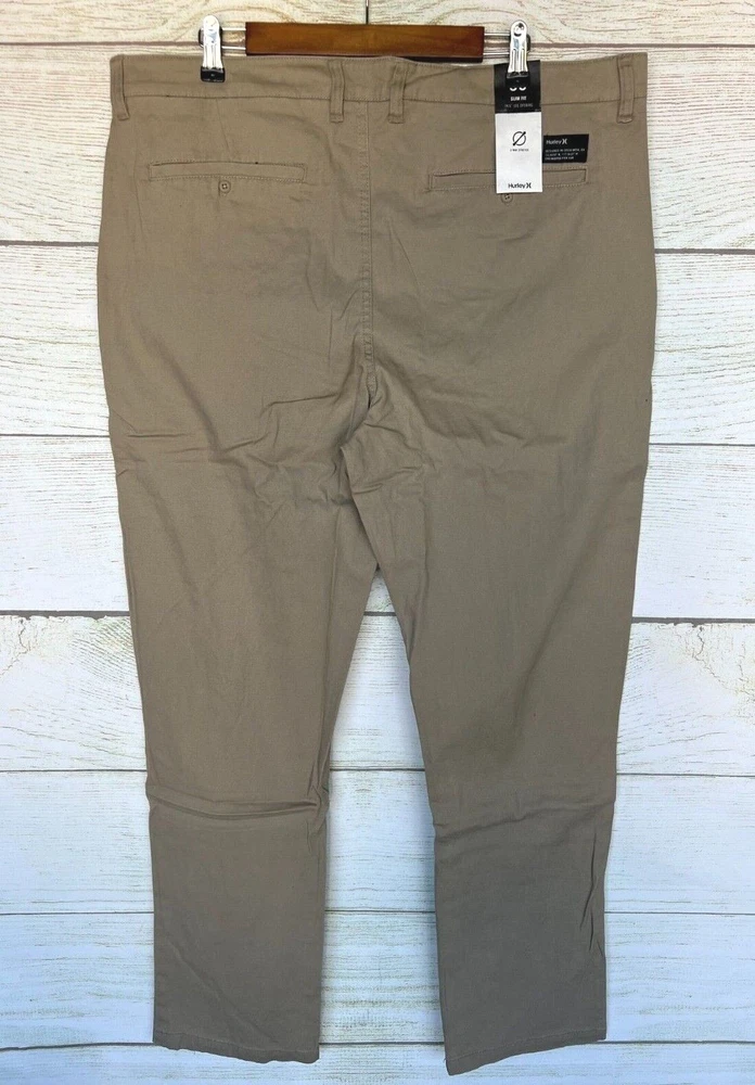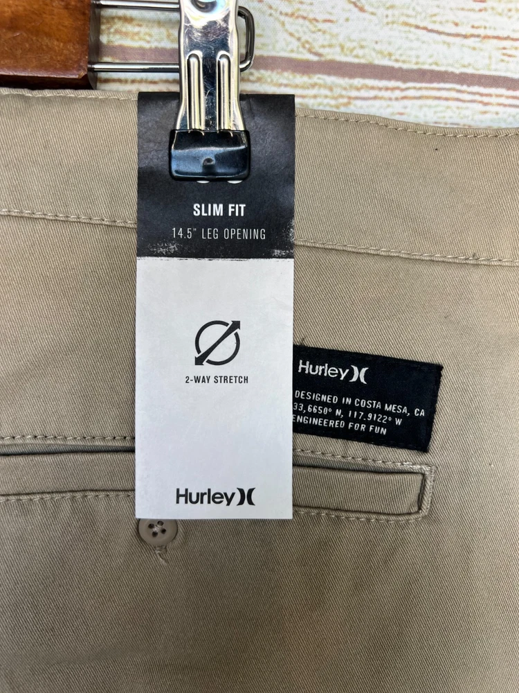 Hurley Worker Pants Mens Size 42X33 BGE Stretch Slim Fit 14.5" Leg Opening New