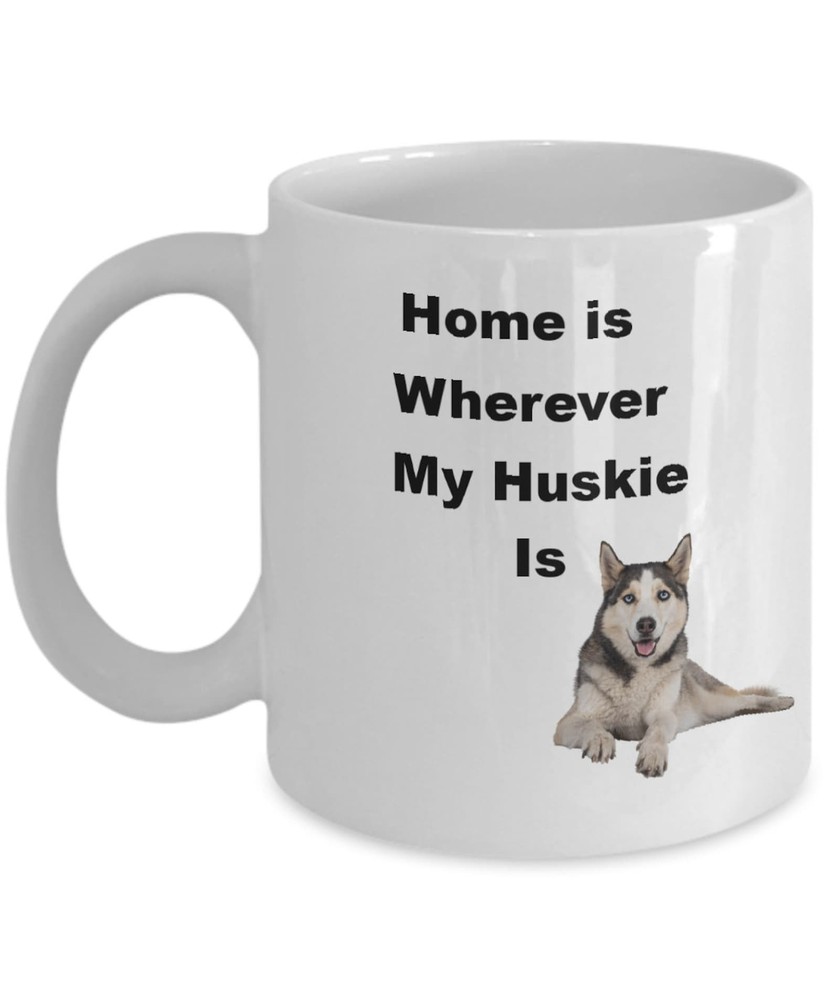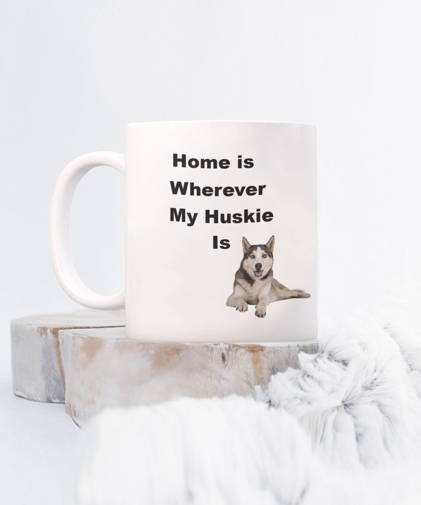 Home Is Wherever My Huskie Is Coffee Mug Huskie Gift Product Details.. This high quality 11oz. ceramic white mug has a premium hard coat that provides crisp and vibrant color reproduction sure to last for years. Perfect for all hot & cold beverages. The highest quality printing possible is used. It will never fade no matter how many times you wash it. Material: 100% Ceramic. Print both sides. Dishwasher and Microwave Safe. High Gloss + Premium White Finish. Printed in the U.S.A. Personalized & Custom. We support personalized and custom mug to add custom, when placing an order, you can add notes to the "order note" in shipping address section. Also you can contact us directly via message. Shipping Info. Ready to ship in 1 to 2 business days, All products are made-to-order and proudly printed in the United States. Shipped by USPS and DHL, You will receive your order in 5-7 days. Replace & Refund. All products are defective during shipping broken, chipped will be replaced free of charge. You are not satisfied with the product, we will refund 100% money to you. If any other issues arise, please do not hesitate to message, we would be more than happy to assist you.