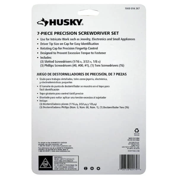 The screwdrivers in this Husky seven-piece set are equipped with contoured handles to provide a comfortable, secure grip. One Torx, three slotted and three Phillips screwdrivers comprise this assorted pack, which is particularly handy for fastening screws on electronics gadgets and trinkets in addition to other tasks involving small objects. The end cap on each handle swivels, allowing the user to hold the tool steady with one hand while cranking with the other.