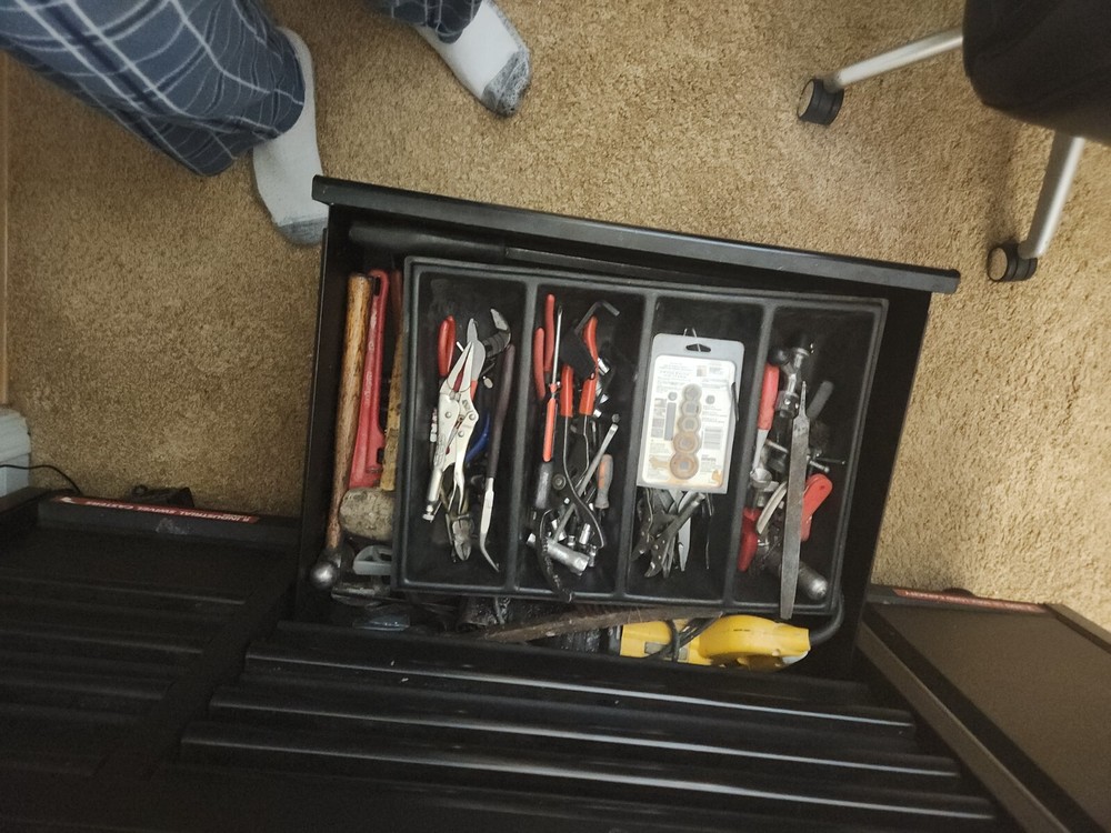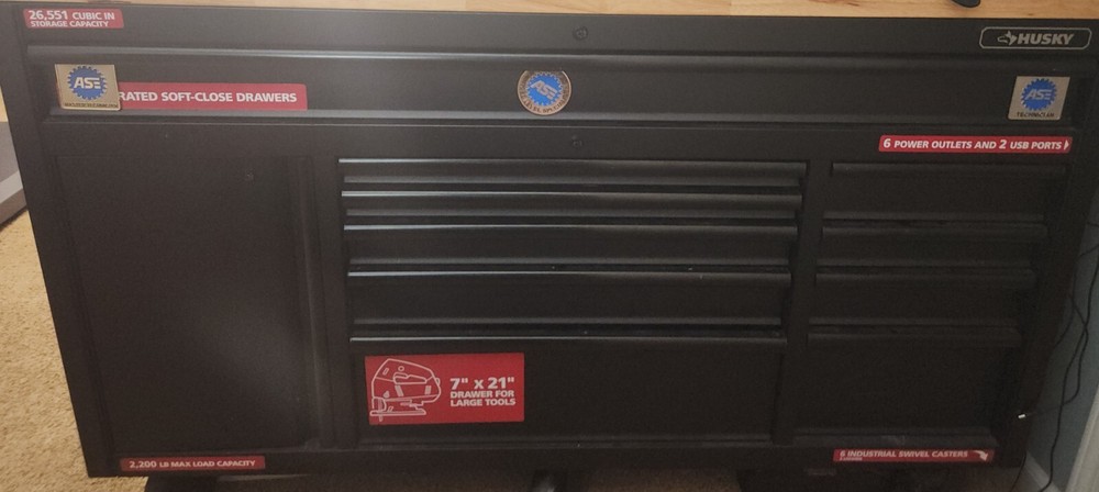 Seller Notes: “Husky Heavy Duty Toolbox with Assorted Mechanic Tools” Features: Ball Bearing Slides, Keyed Lock Material: Metal Type: Tool Box Brand: Husky