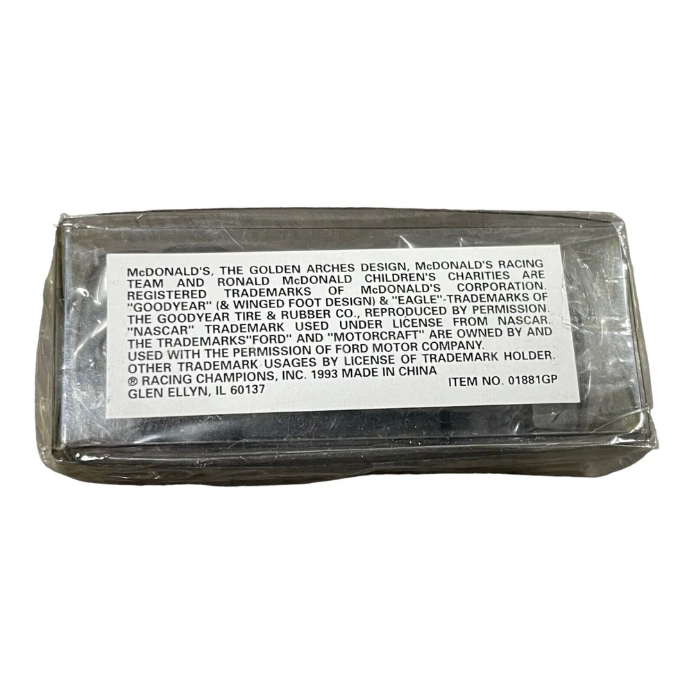 Character Family:NASCARColor:GrayAutographed:NoSeries:Racing CollectablesVehicle Year:1993Model:McDonalds Test Car 1 / 64Brand:Racing ChampionsMPN:0881GPMaterial:Diecastgtin13:Does not applyRacing Team:Junior JohnsonRace series:DaytonaDriver:Hut StricklinOrganization:NASCARFeatures:Limited Edition, Unopened Box, With CaseScale:1:64UPC:Does not applyVehicle Make:FordVehicle Type:NASCAR Racecar